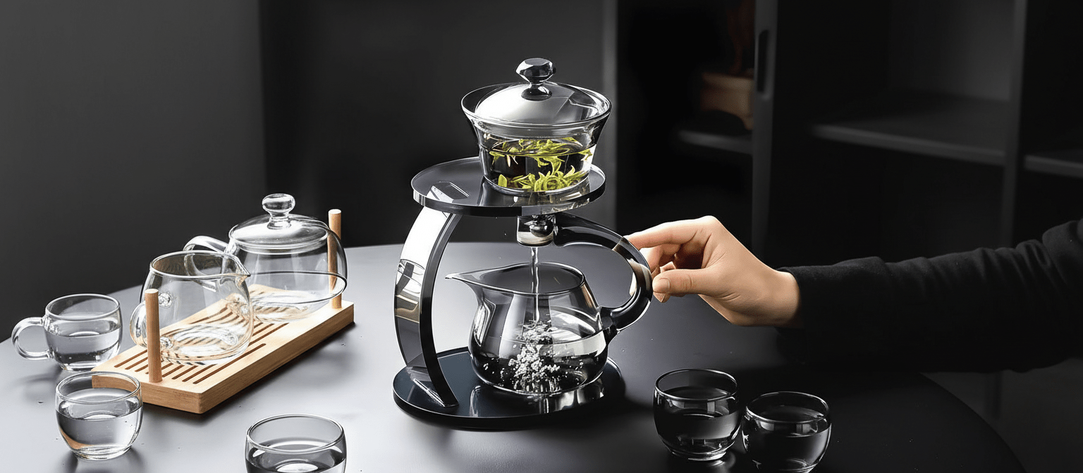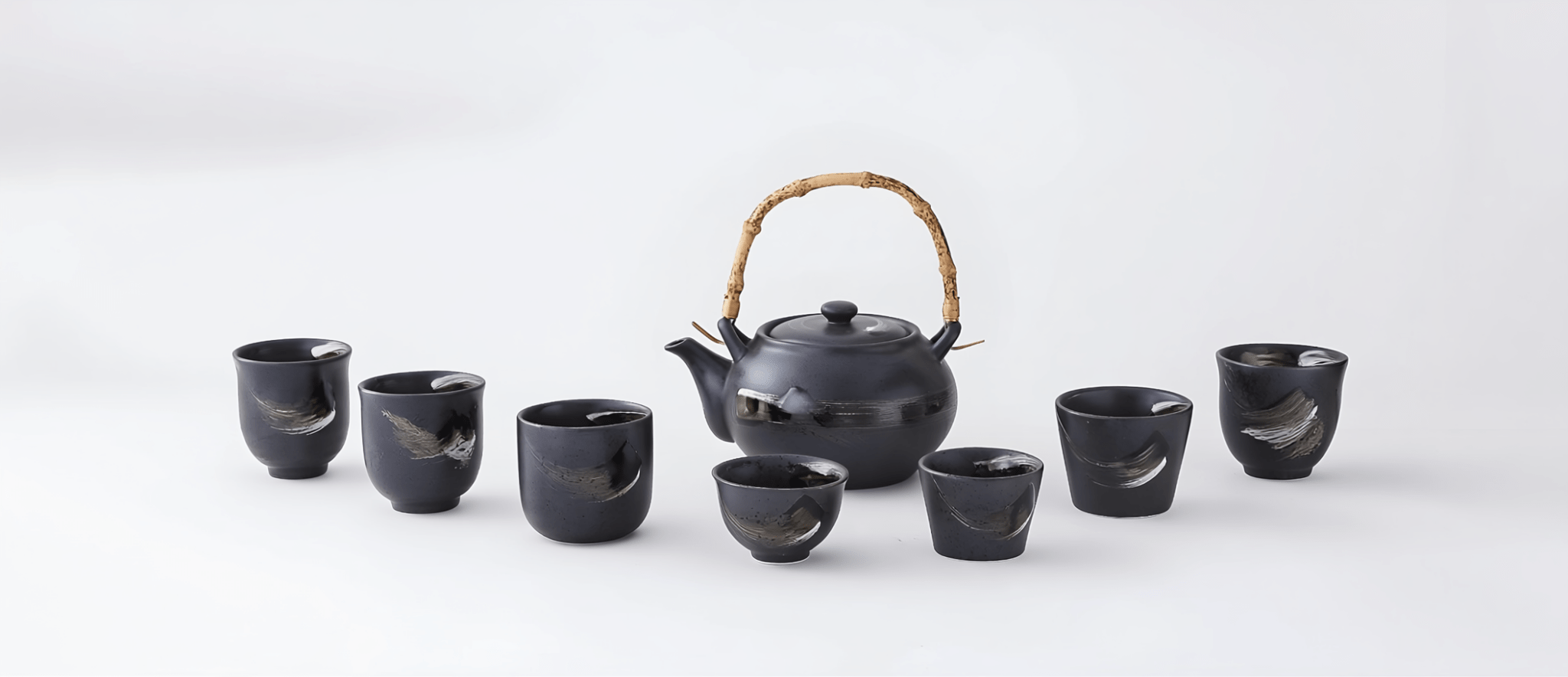 Hand-Painted Stoneware Tea Set – Artisan Teapot with 4 Cups & Tray