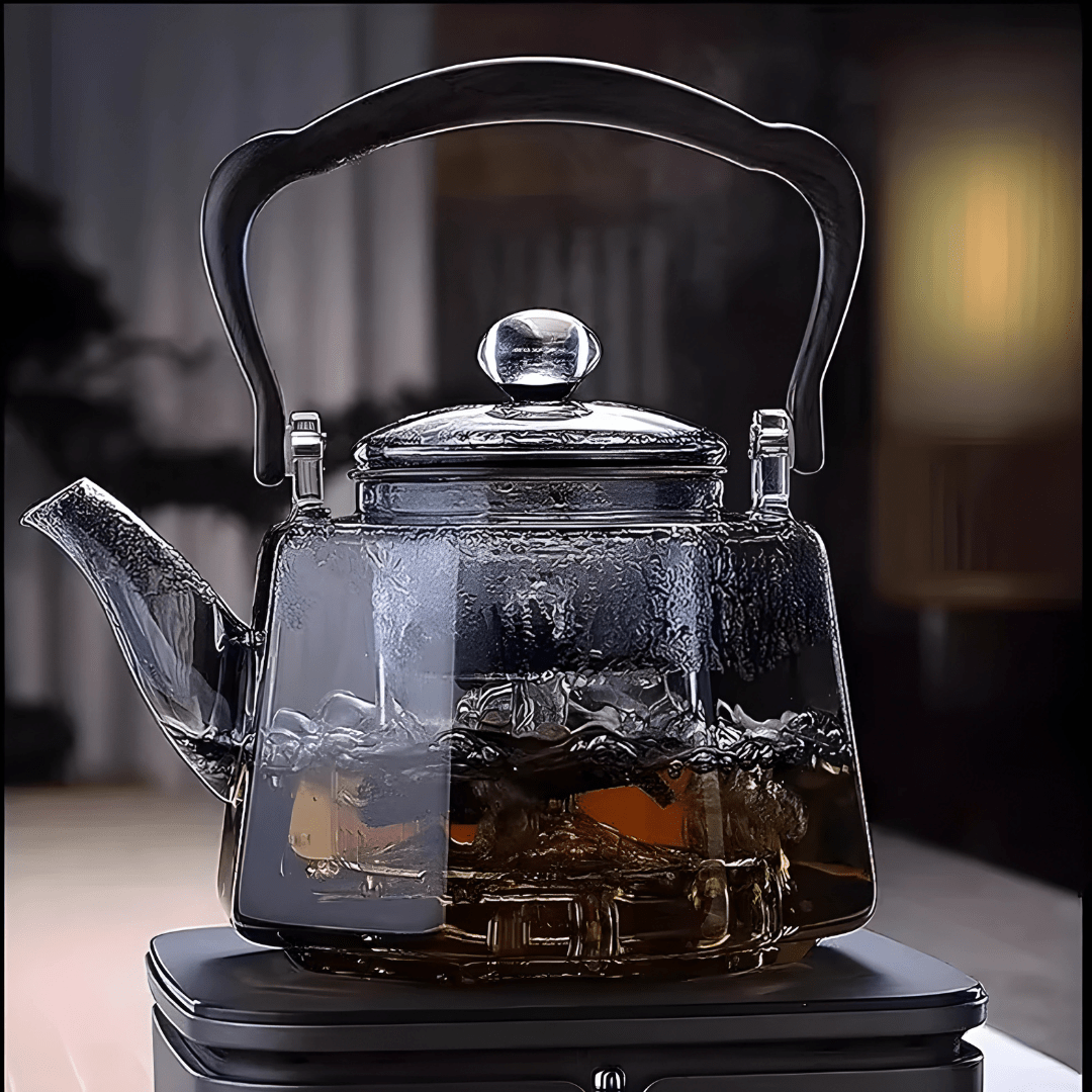 غلاية شاي زجاجية فاخرة مع تسخين ذكي بقوة 1000 واط