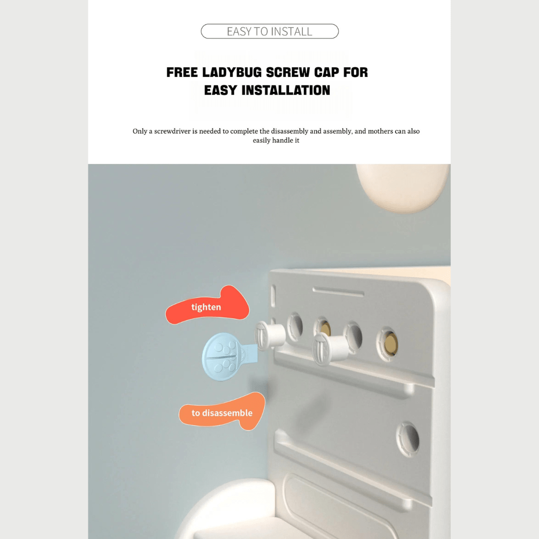 مع صندوق تخزين مزدوج الباب وتصميم إنساني، يمكن لهذه الخزانة أن تتحمل ما يصل إلى 60 كجم ويوصى بها للأطفال حتى سن 7 سنوات.