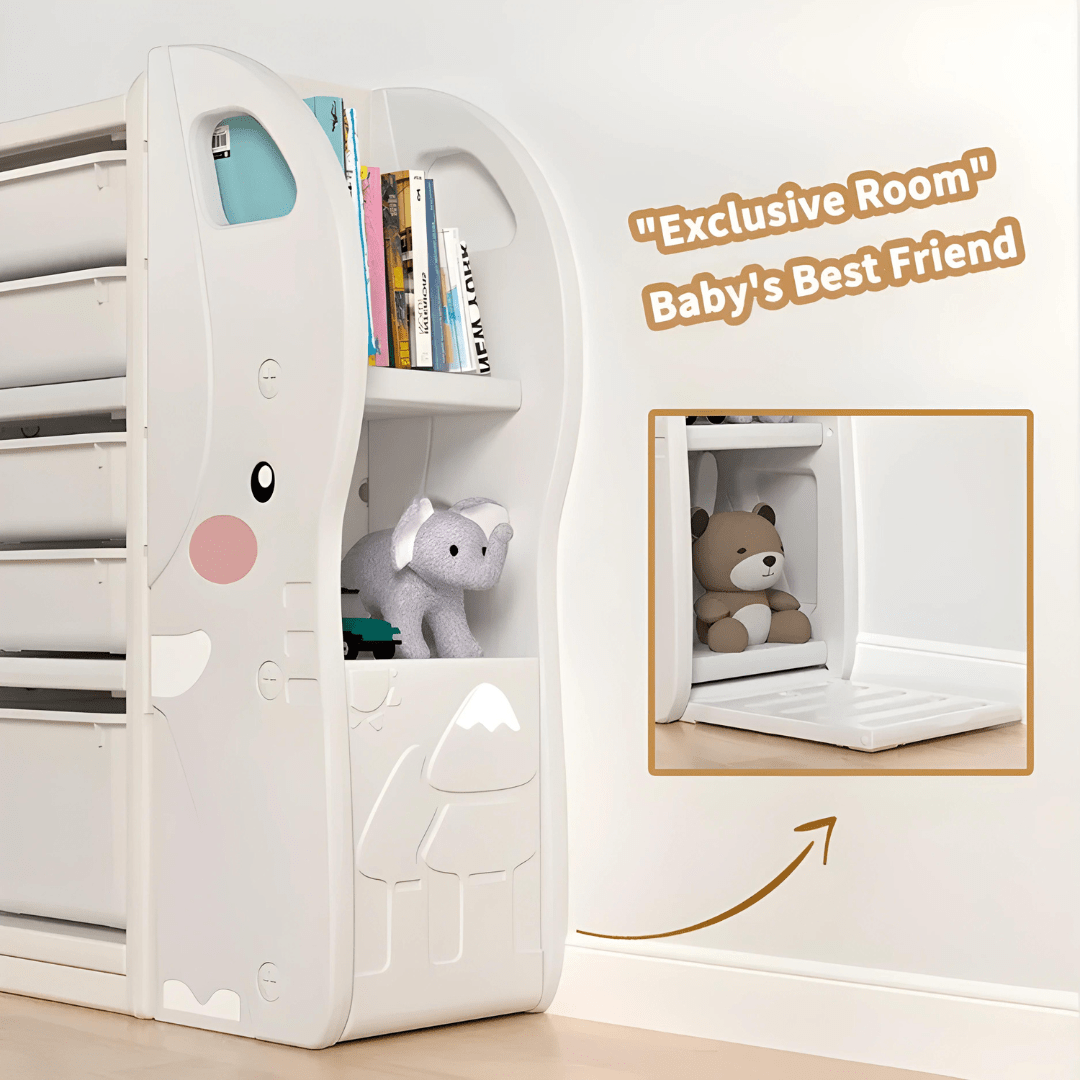 صُمم ليتحمل طاقة الصغار، ويبقى ثابتًا في مكانه بفضل تصميمه المتين. يتميز بسعة كبيرة، ويتسع لمجموعة كبيرة من الألعاب والأدوات، بينما يُضفي تصميمه المُبتكر على شكل فيل لمسةً مرحةً على أي غرفة.