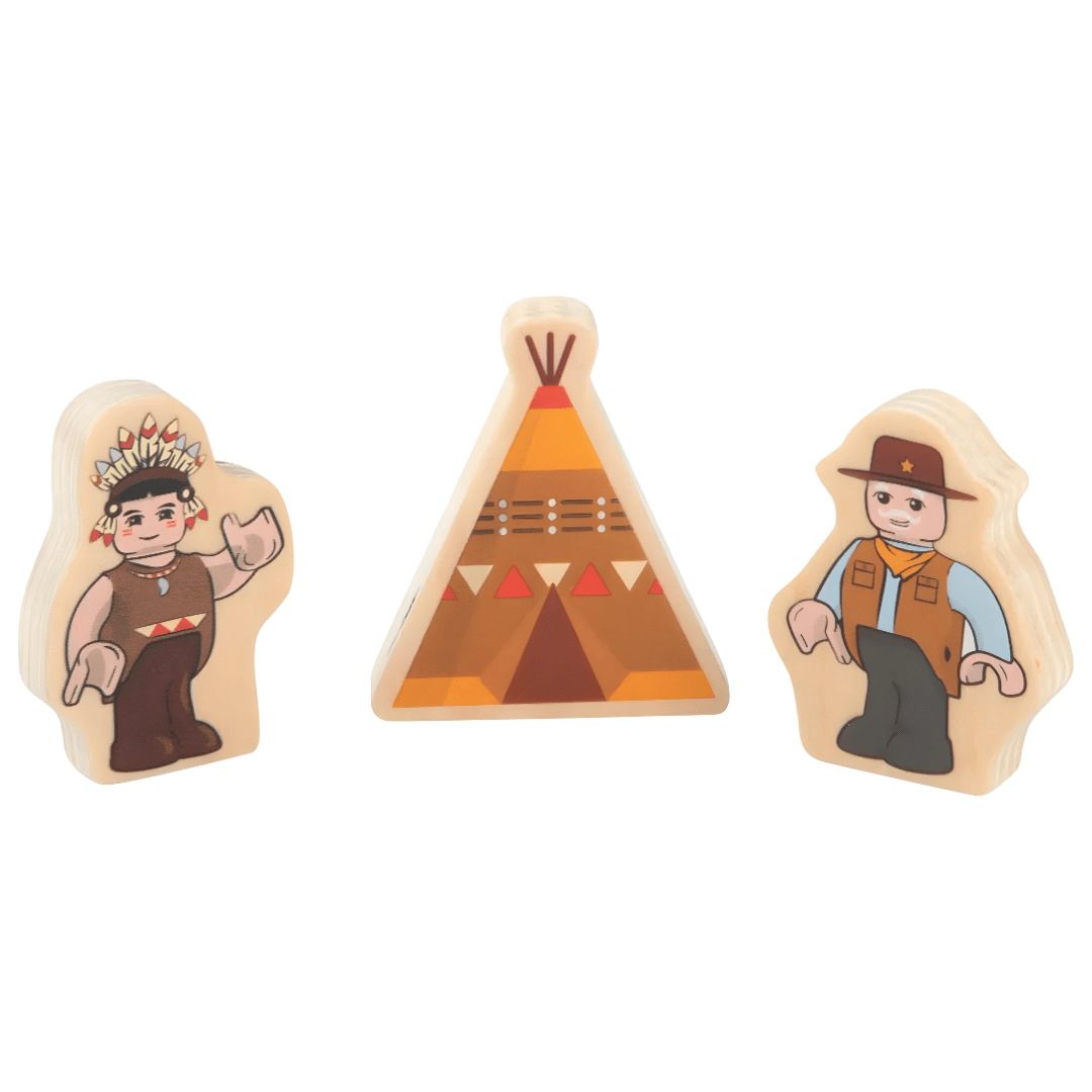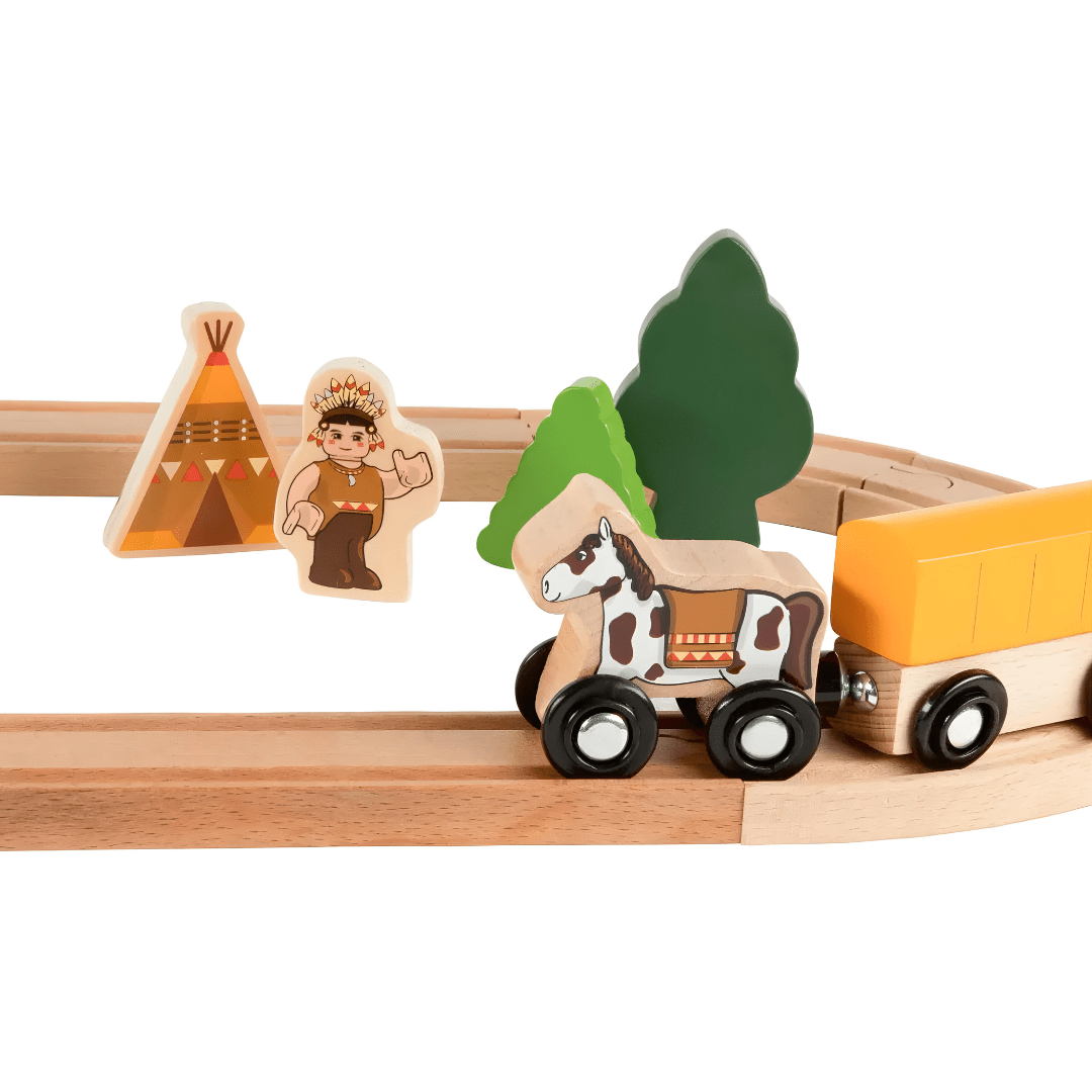 مجموعة سكة حديد خشبية من بلايتيف، مجموعة وايلد ويست، 18 قطعة