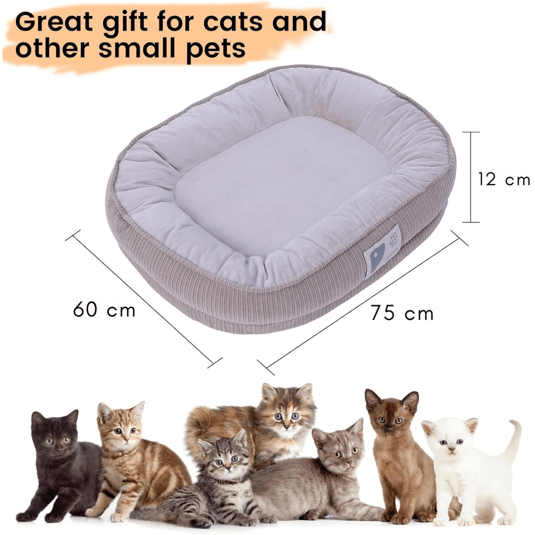 مصنوع من قماش ناعم، محشو بقطن البولي بروبيلين الصديق للبيئة للحفاظ على سرير القطط دافئًا ومريحًا، ويوفر بيئة نوم مريحة وصحية، كما أن الحافة المرتفعة تخلق شعورًا بالأمان وتوفر دعمًا للرأس والرقبة، مما يساعد على تقليل مستويات التوتر.