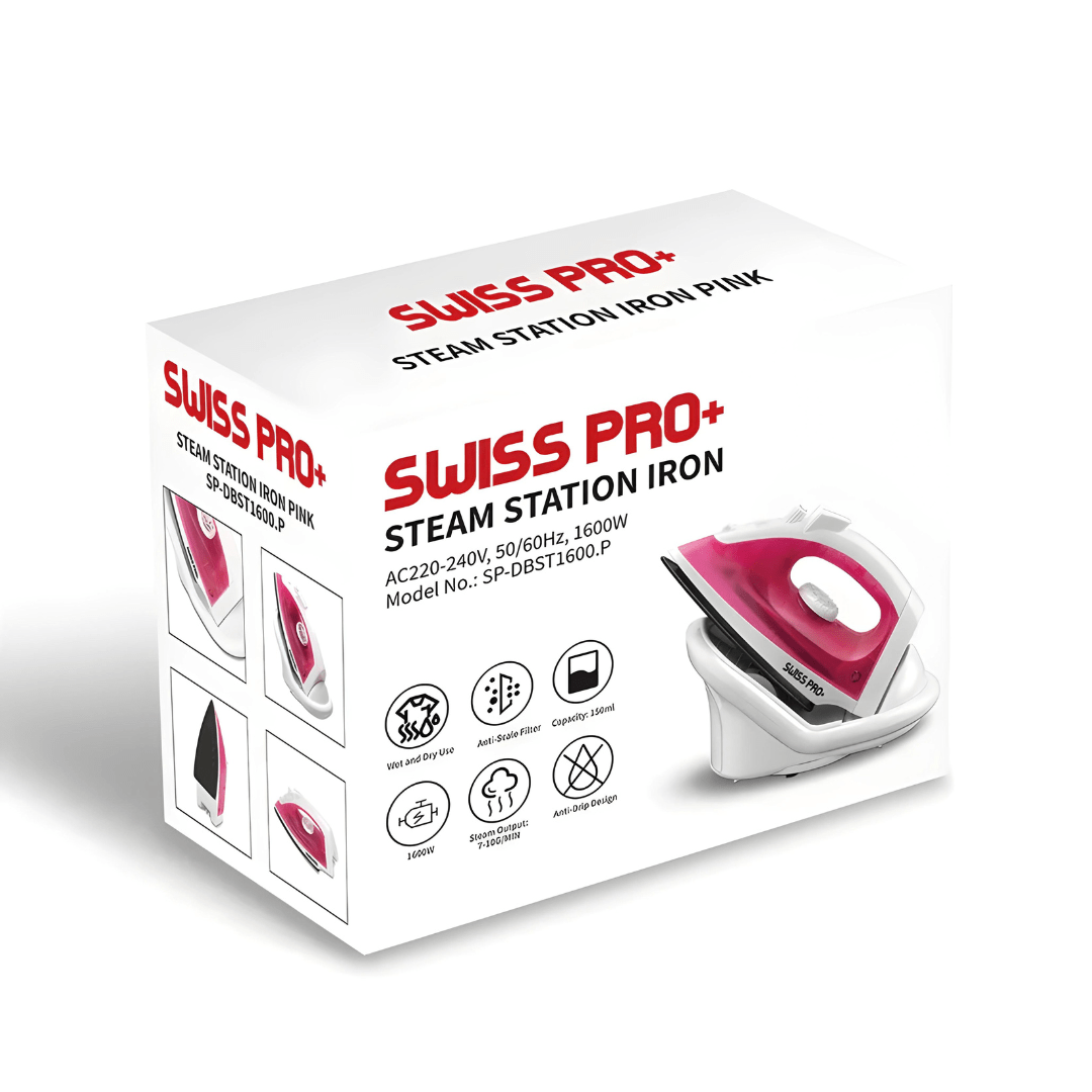 مكواة بخار سويس برو+ وردية اللون بقوة 1600 واط