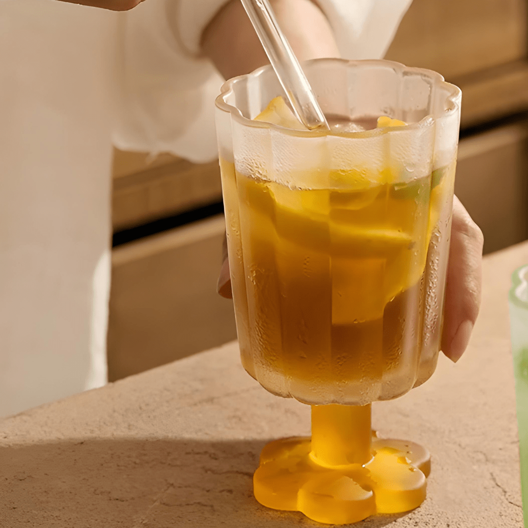Add a touch of charm to your summer drinks with this 225ml frosted cocktail glass, designed in a beautiful flower shape. Its unique petal-style base offers an ergonomic grip—easy to hold and perfect for relaxing moments.