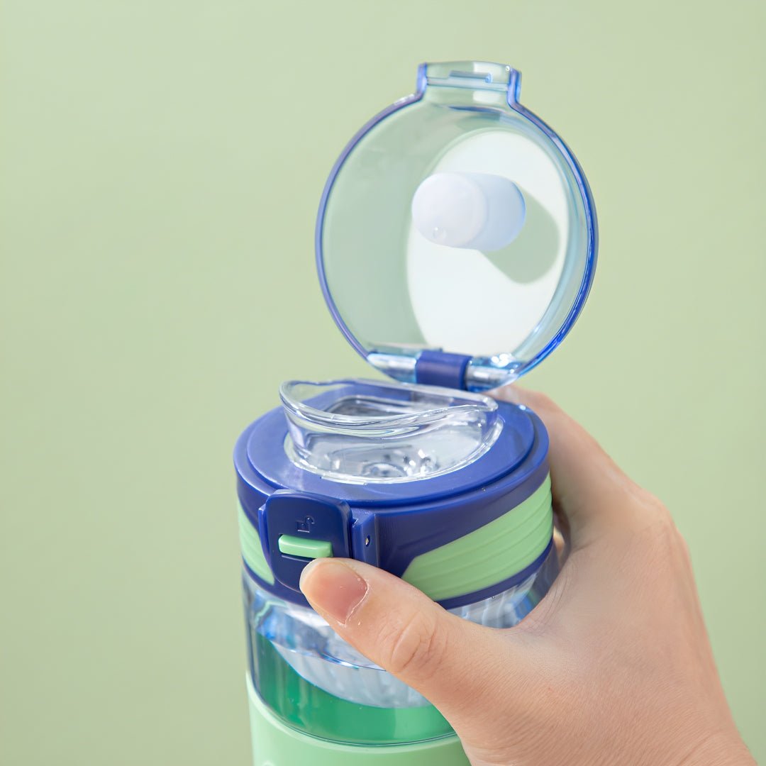 The built-in removable strainer lets you infuse your water with fruits or herbs, helping you stay refreshed and energized throughout the day. Its leak-proof construction and secure locking lid prevent spills, whether you're commuting, hiking, or at the gym.