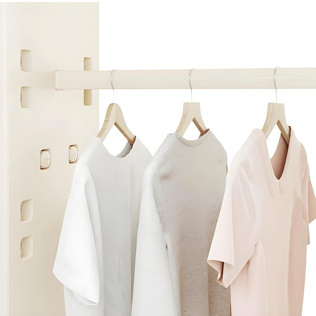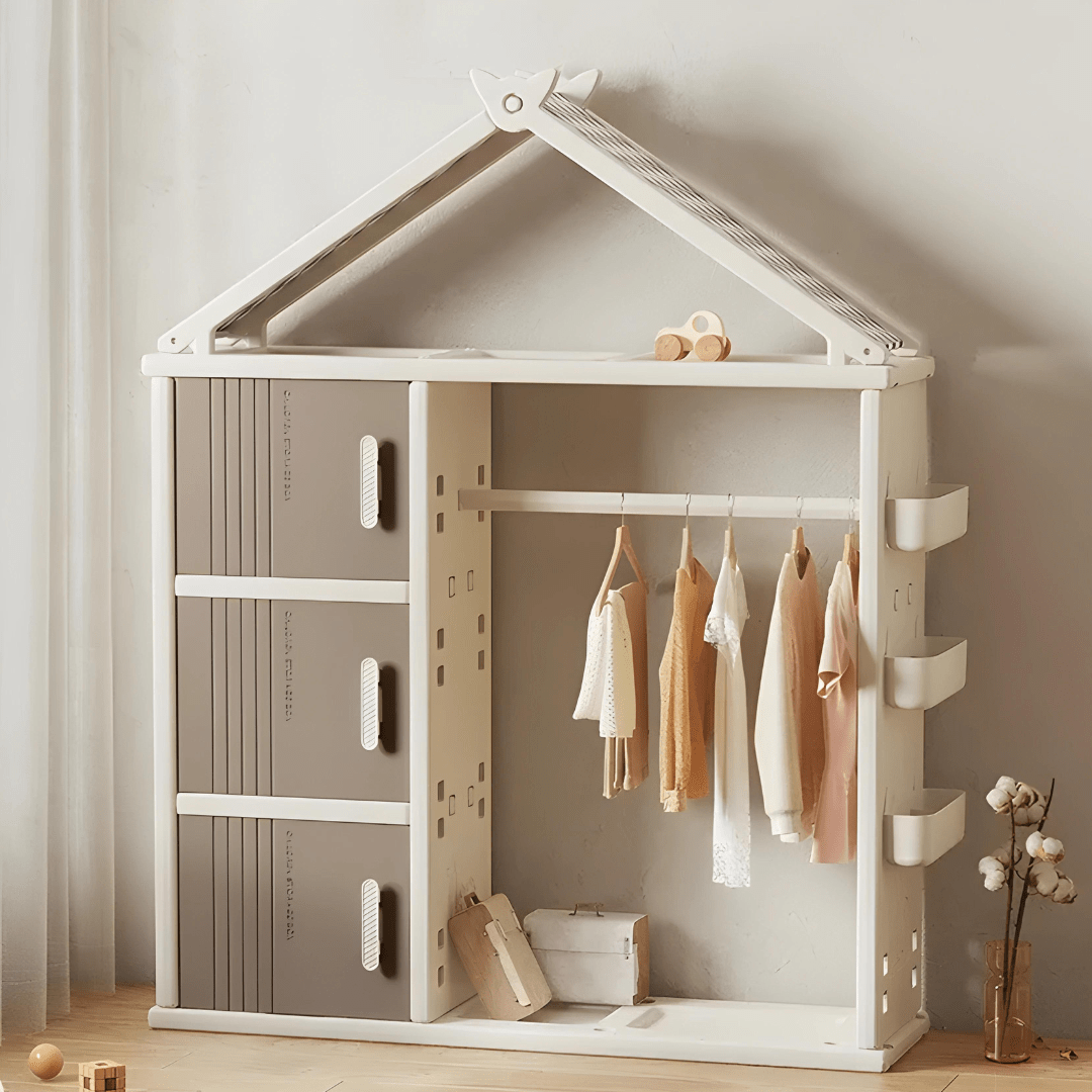 This amazing kids' wardrobe boasts a sturdy rod for hanging clothes and three enclosed cubes with doors, providing ample storage space for shoes and more
