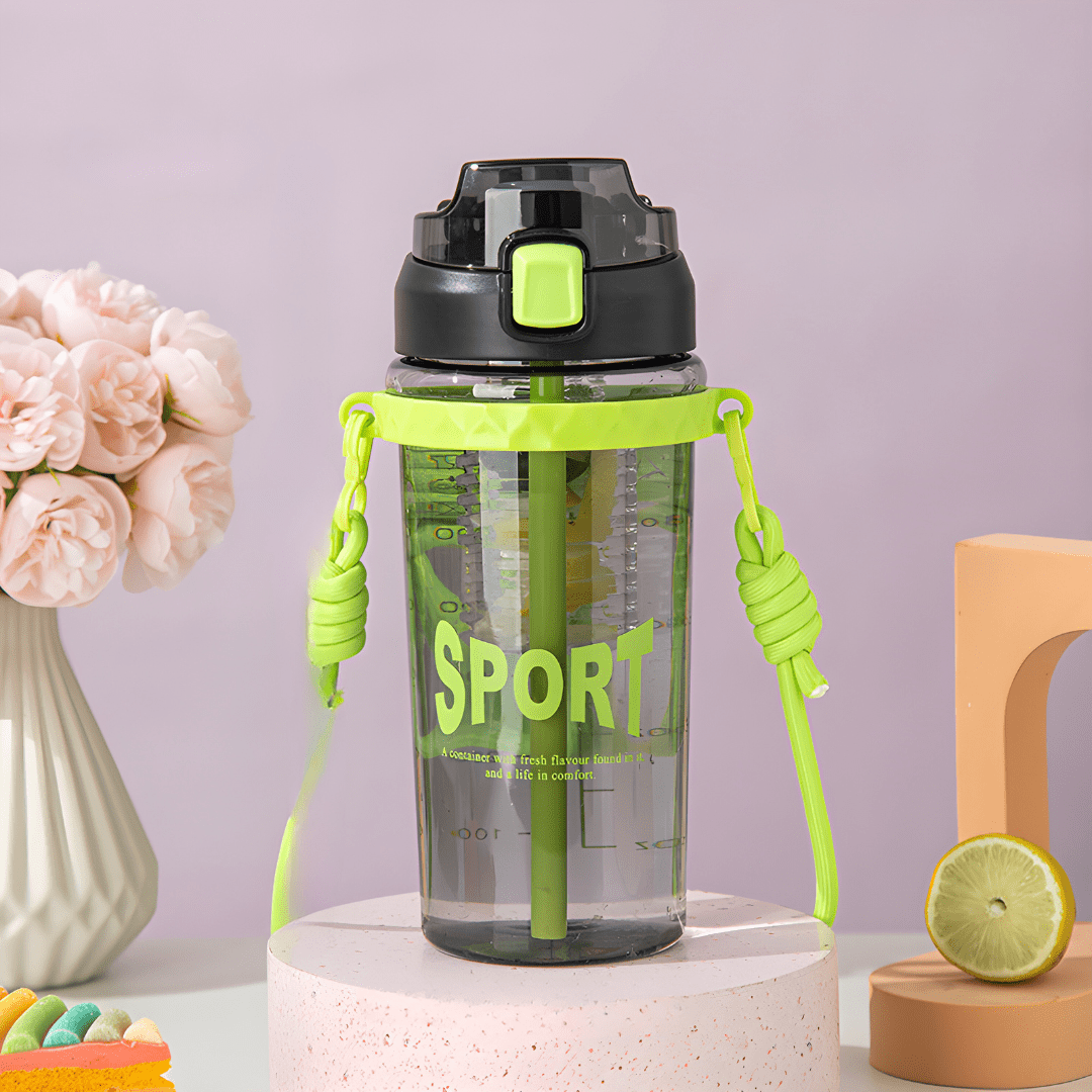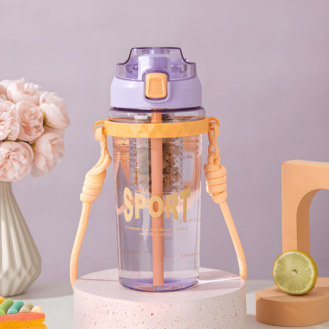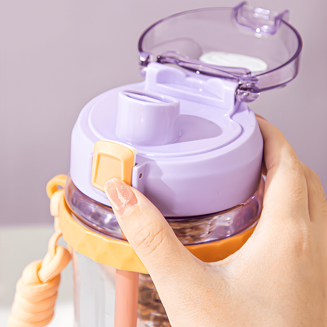 The bottle features a convenient straw and a one-key uncap design for easy access