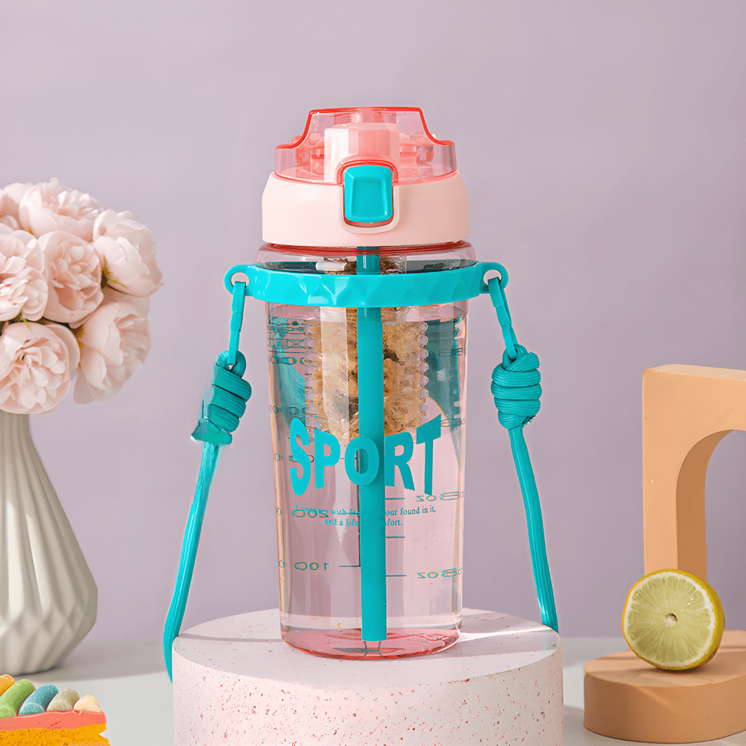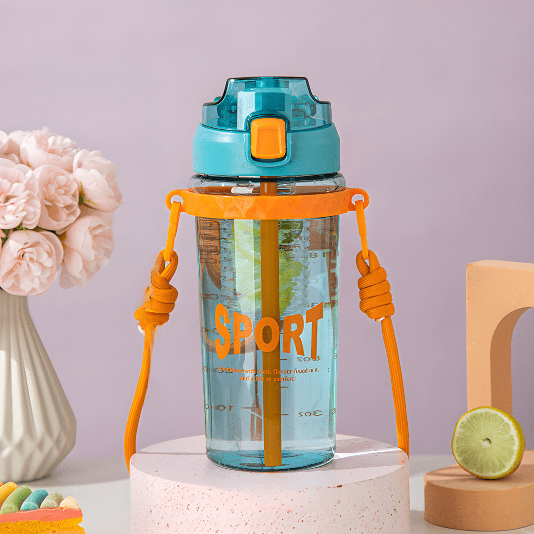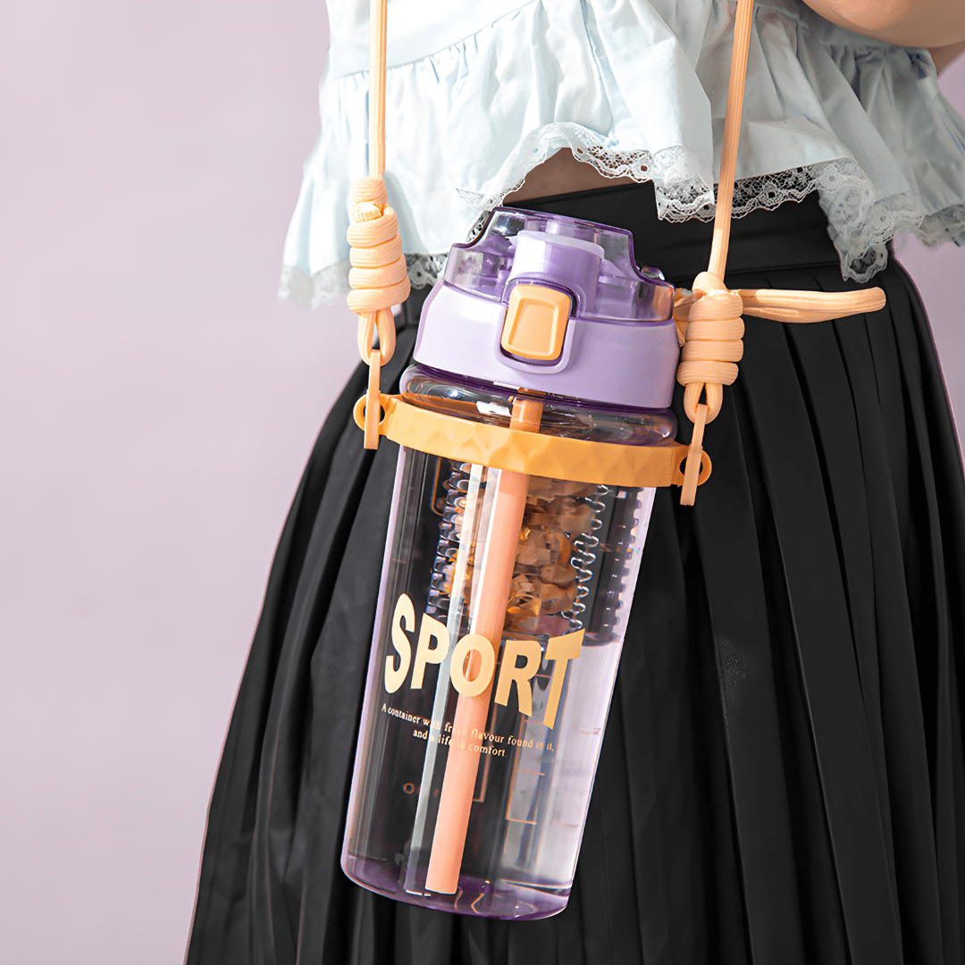 The bottle features a convenient straw and a one-key uncap design for easy access