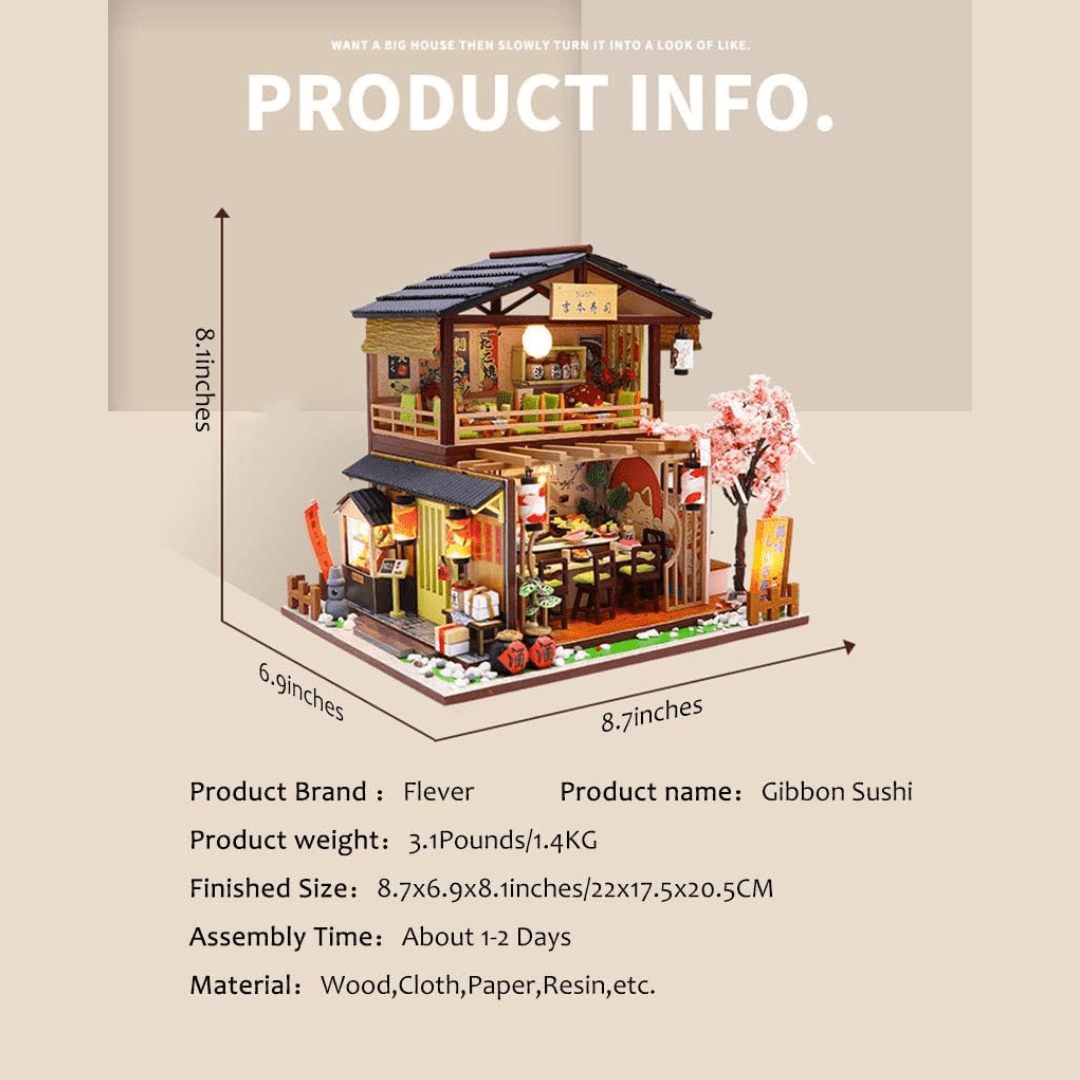 DIY Japanese Style Miniature Sushi House Kit With Led Light