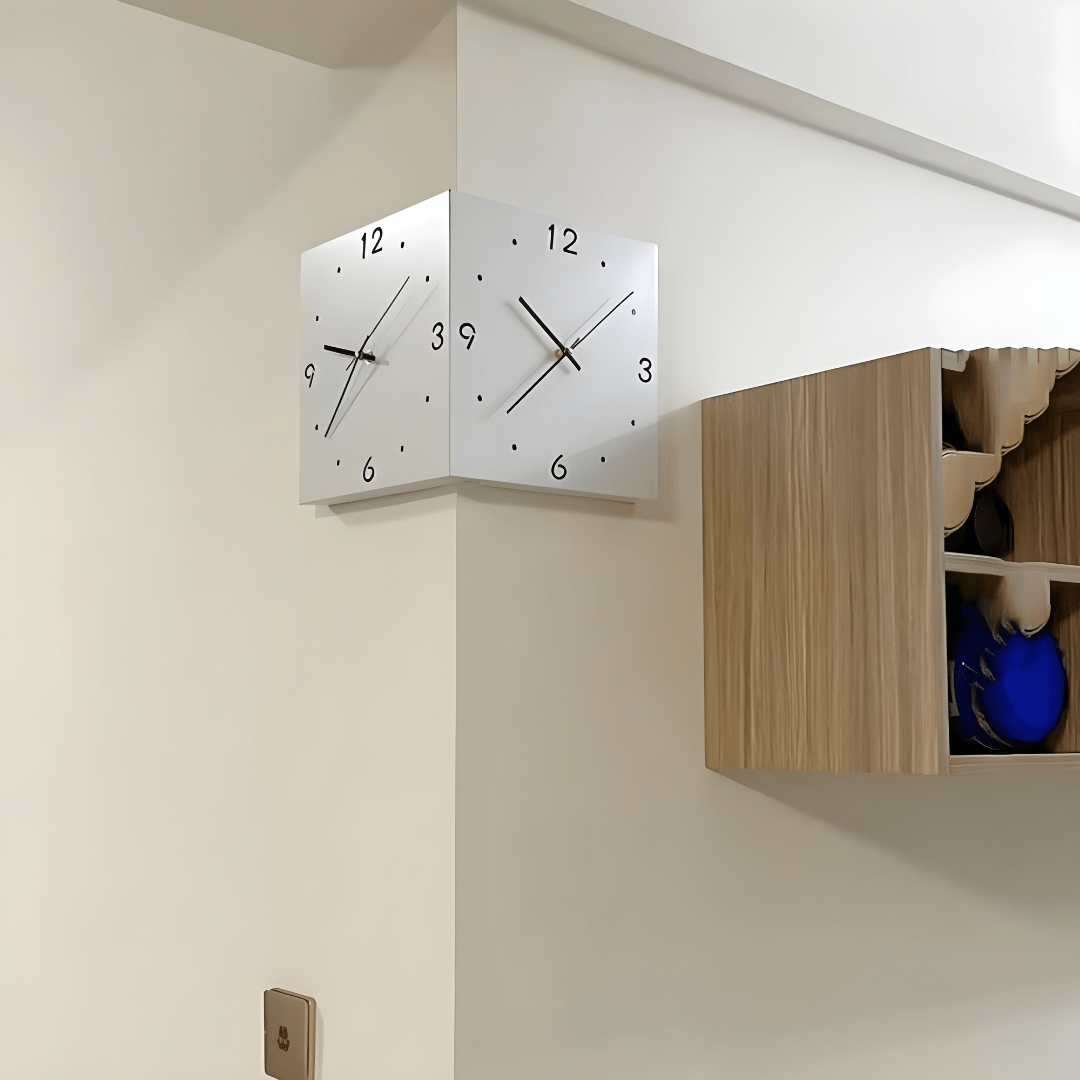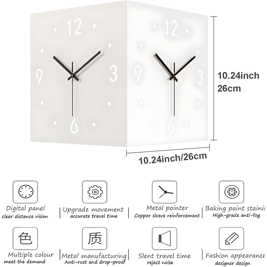 Double-Sided Metal Corner Wall Clock is a unique and functional addition to any space