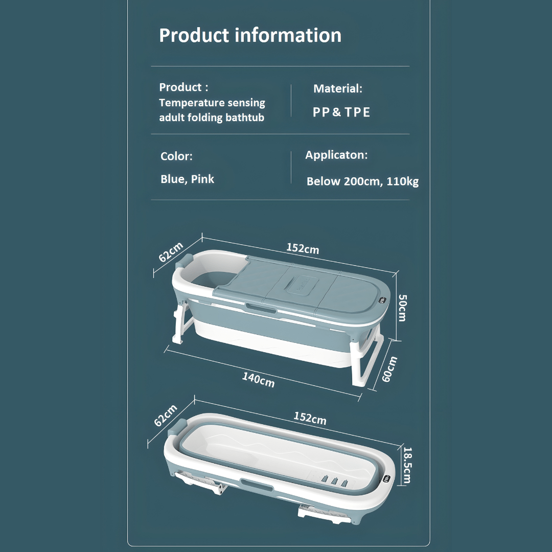 The Foldable Bath Tub is designed for both adults and kids , offering a spacious 152cm length that comfortably accommodates two children or one adult