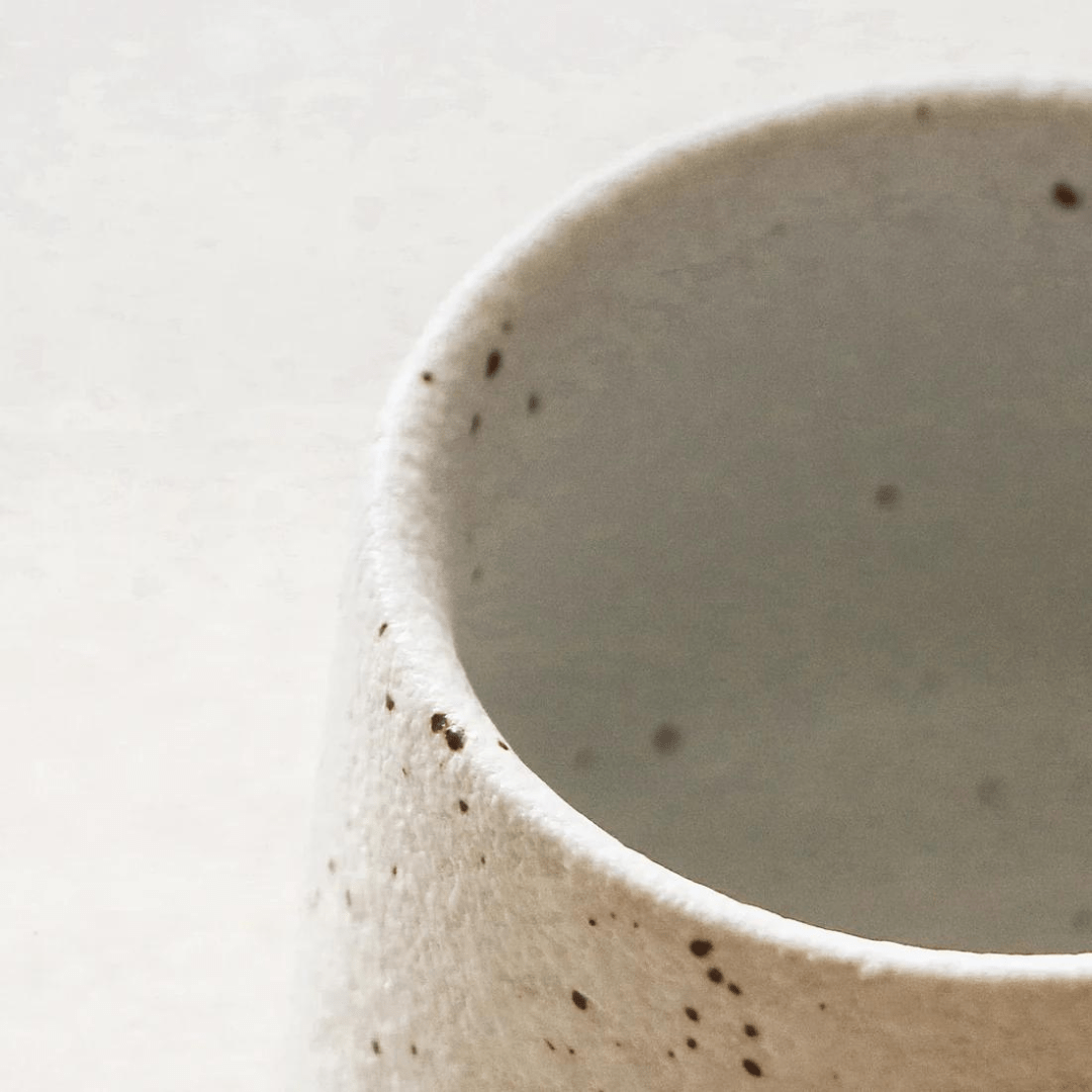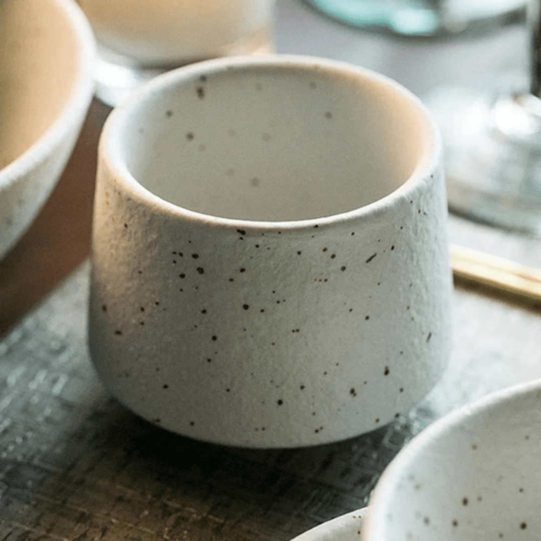 Designed in a traditional Chinese Kung Fu style, the cup features speckles and contrasting brush strokes for a unique tactile and visual experience while enjoying your tea or coffee.