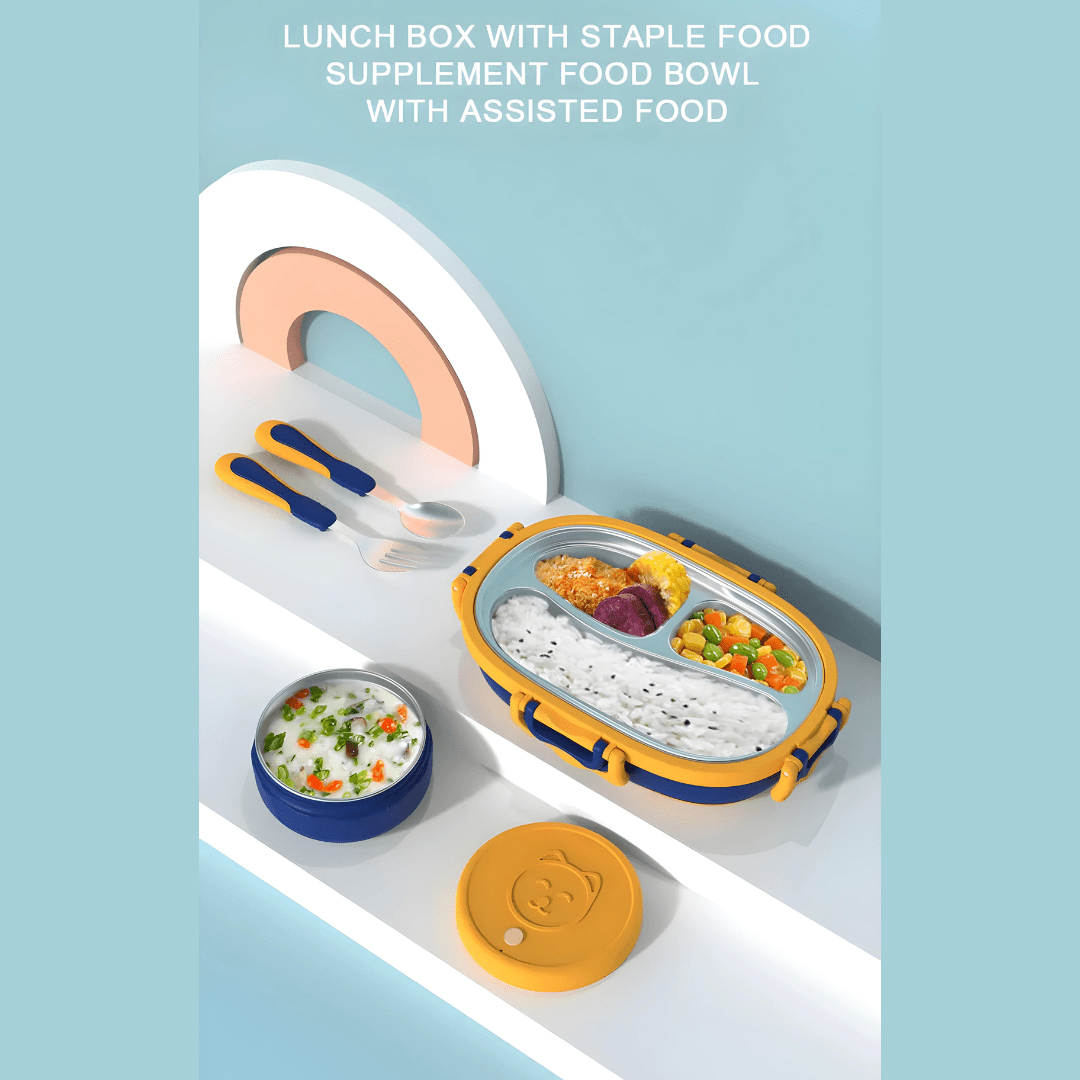 Premium Quality BPA-Free 3-Compartment Stainless Steel Baby Feeding Bento Box, designed for the modern parent