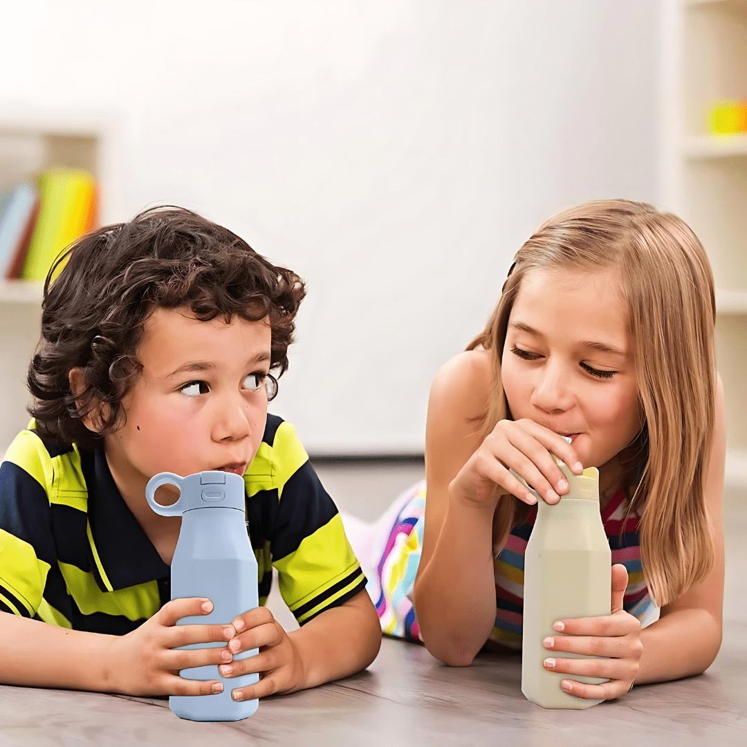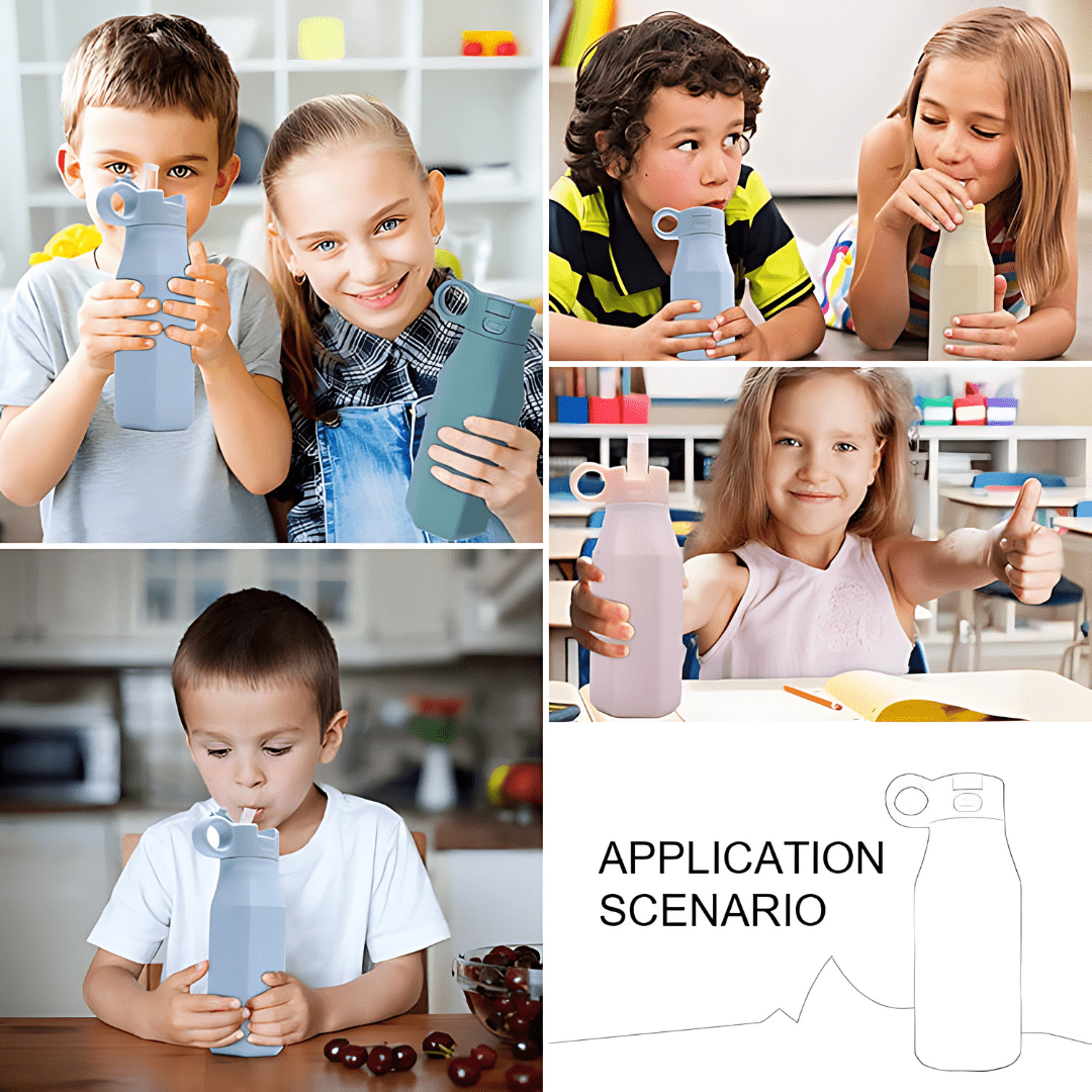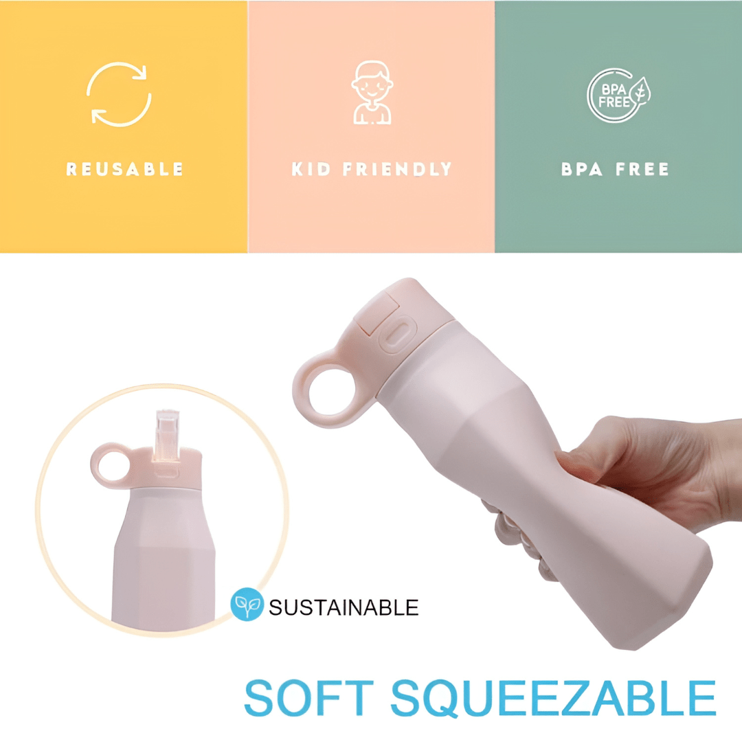 Mini Joy Silicone bottle With Straw And Flip-Up Lid , Ideal For Toddlers And Older kids
