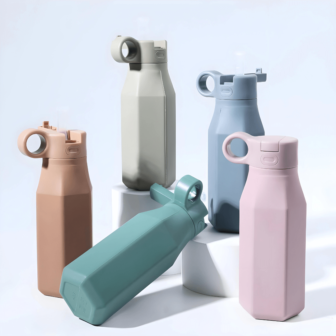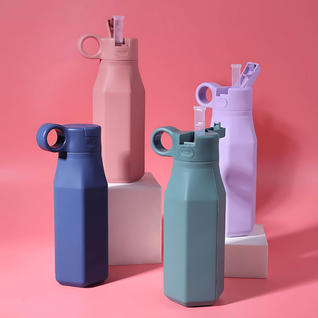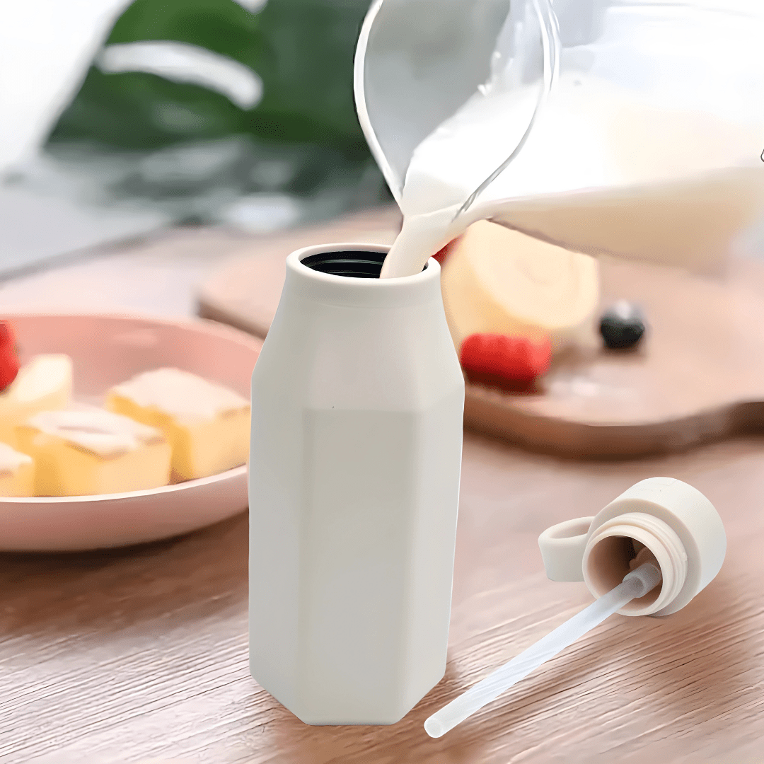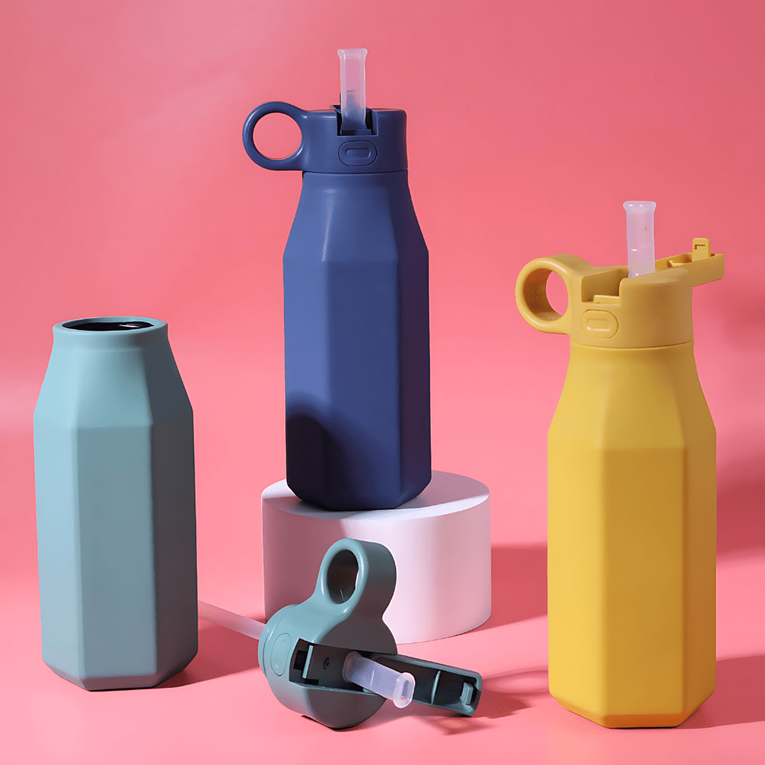 Mini Joy Silicone bottle With Straw And Flip-Up Lid , Ideal For Toddlers And Older kids