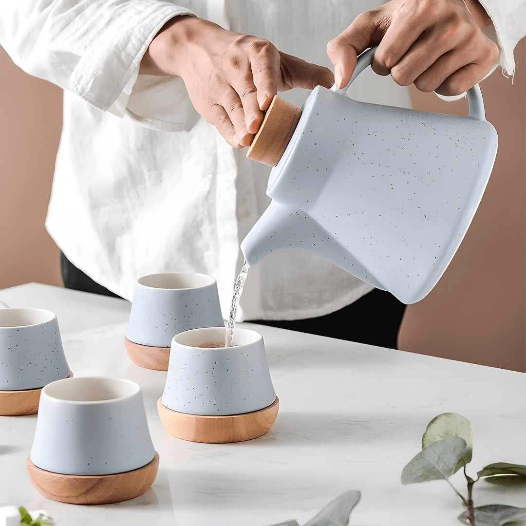 With a clean Scandinavian design, smooth curves, and a soft matte finish, each pour is as satisfying as the sip. The acacia wooden lid adds a warm, natural touch, while the premium matte glaze gives the set a sophisticated and timeless look.