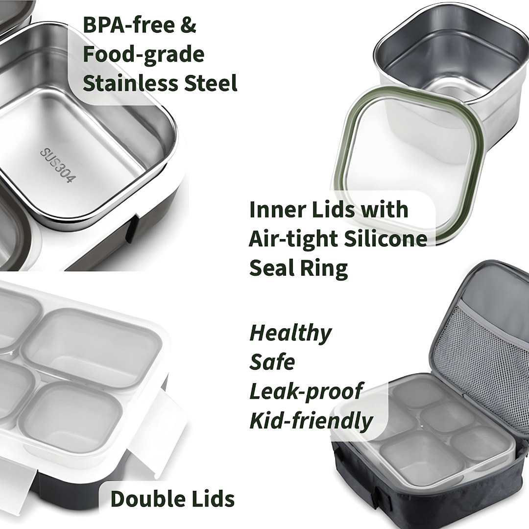 Spacious Capacity – Total 1000ML with 3 compartments (140ml × 3 + 290ml × 2)