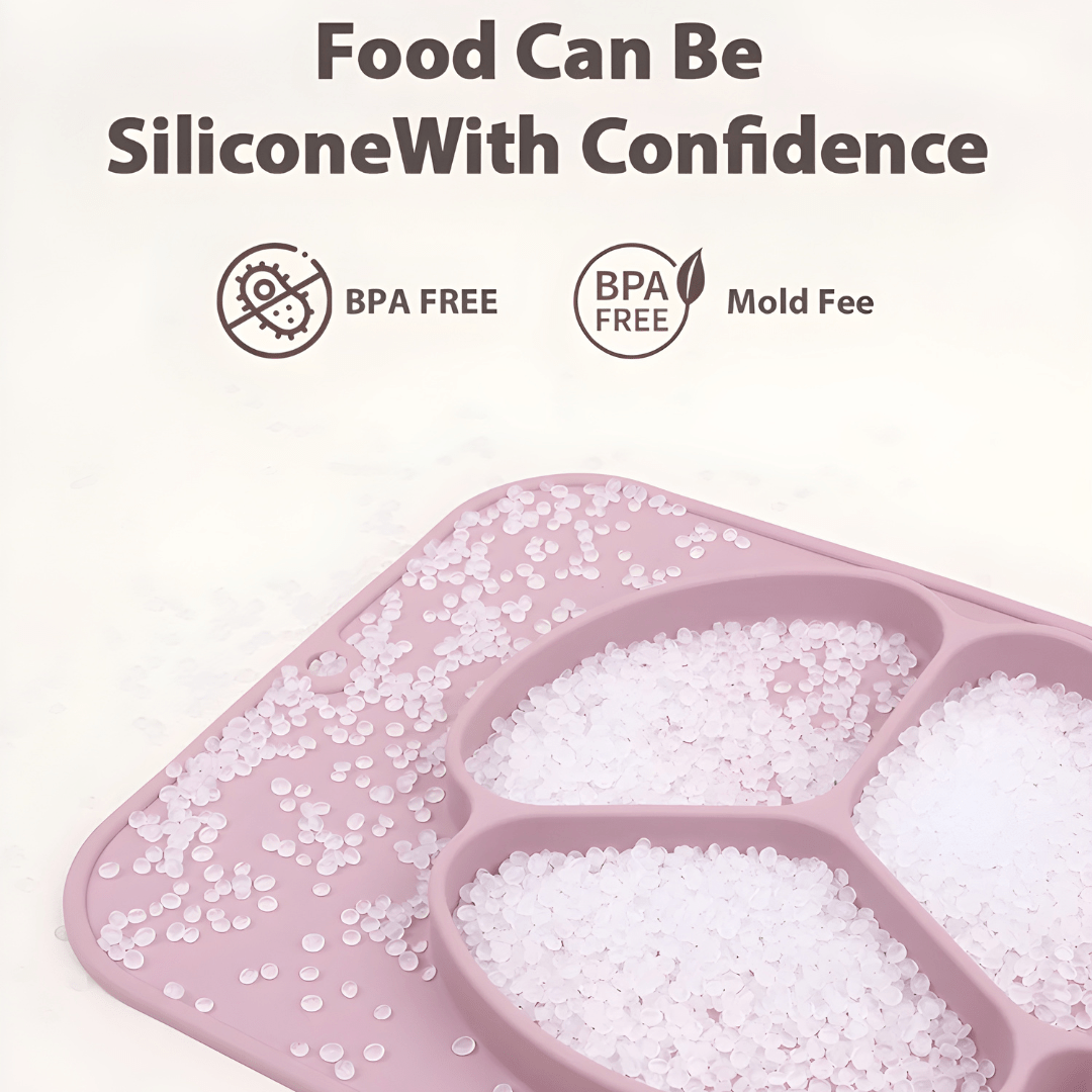 Silicone Divided Toddler Feeding Plate with suction, designed to make mealtime easier and more enjoyable for both parents and little ones