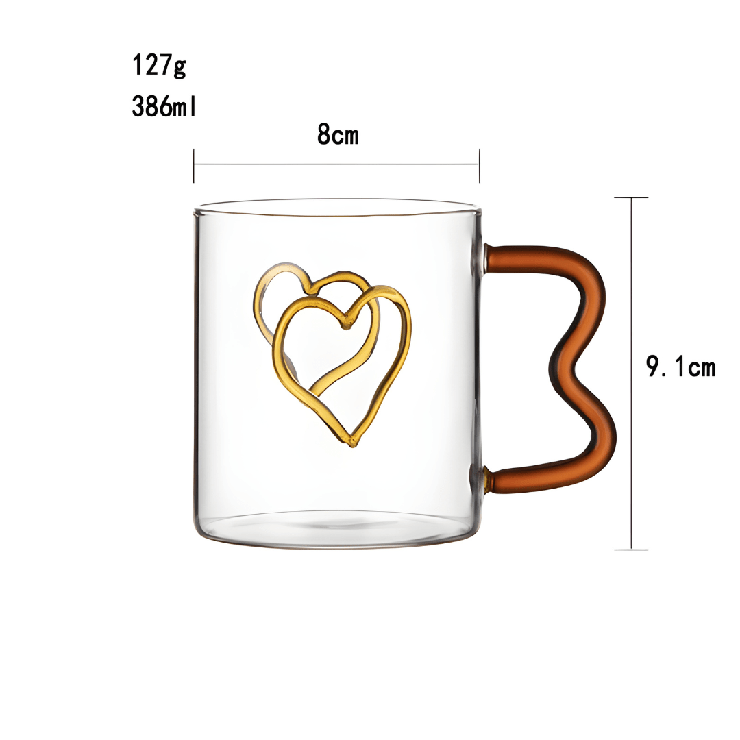 380ml Heart-Shaped Clear Glass Mug with Wavy Handle