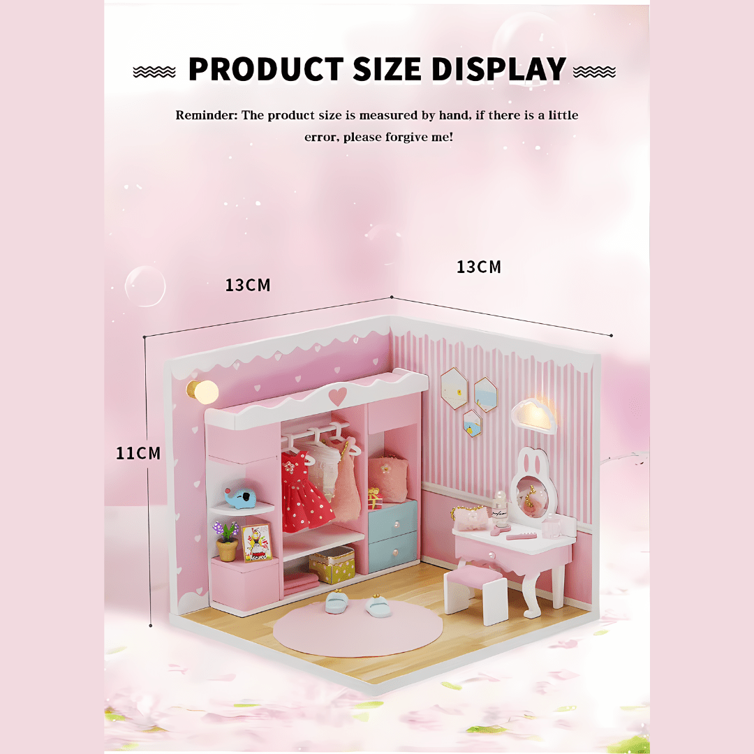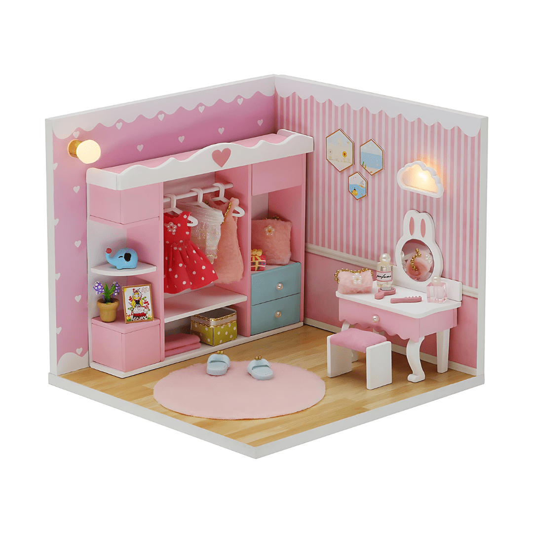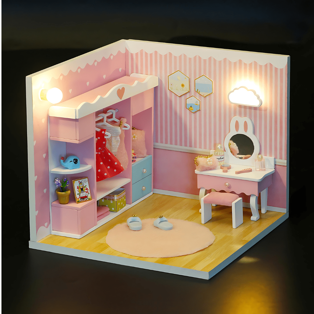 DIY 3D houten miniatuur roze droomprinsessenkamer voor kinderen met led-licht