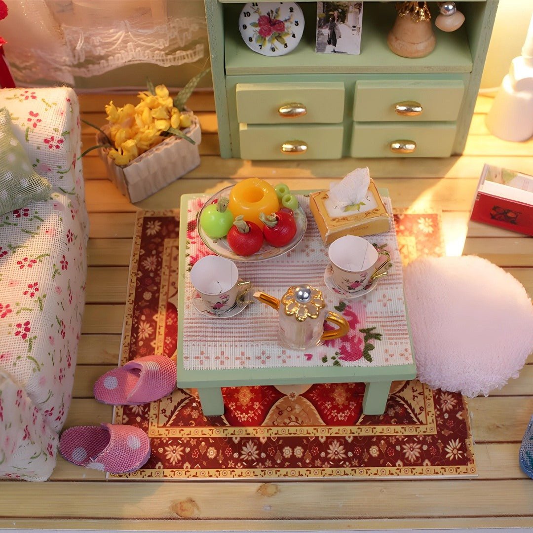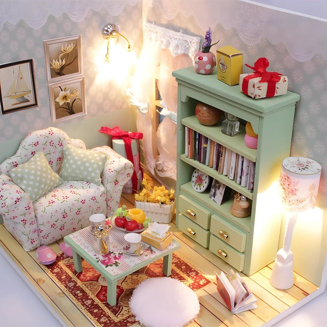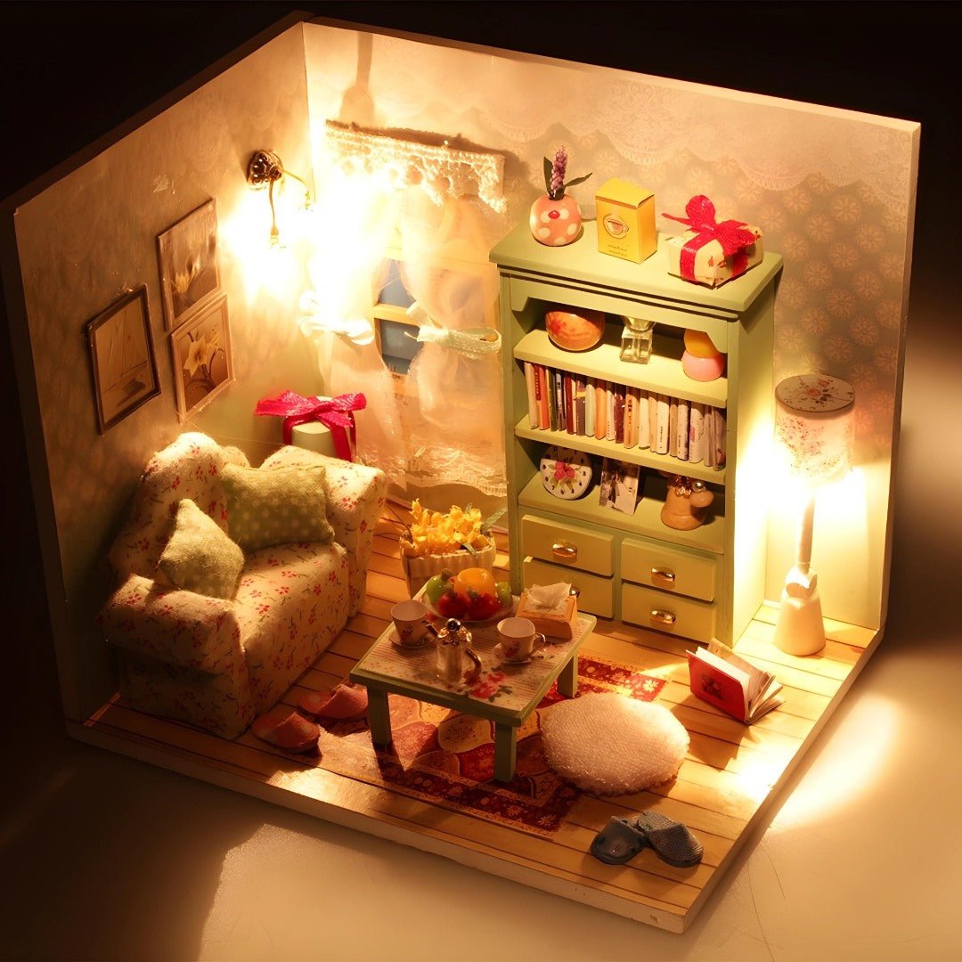 DIY houten familiehal miniatuur poppenhuis kit met LED-licht