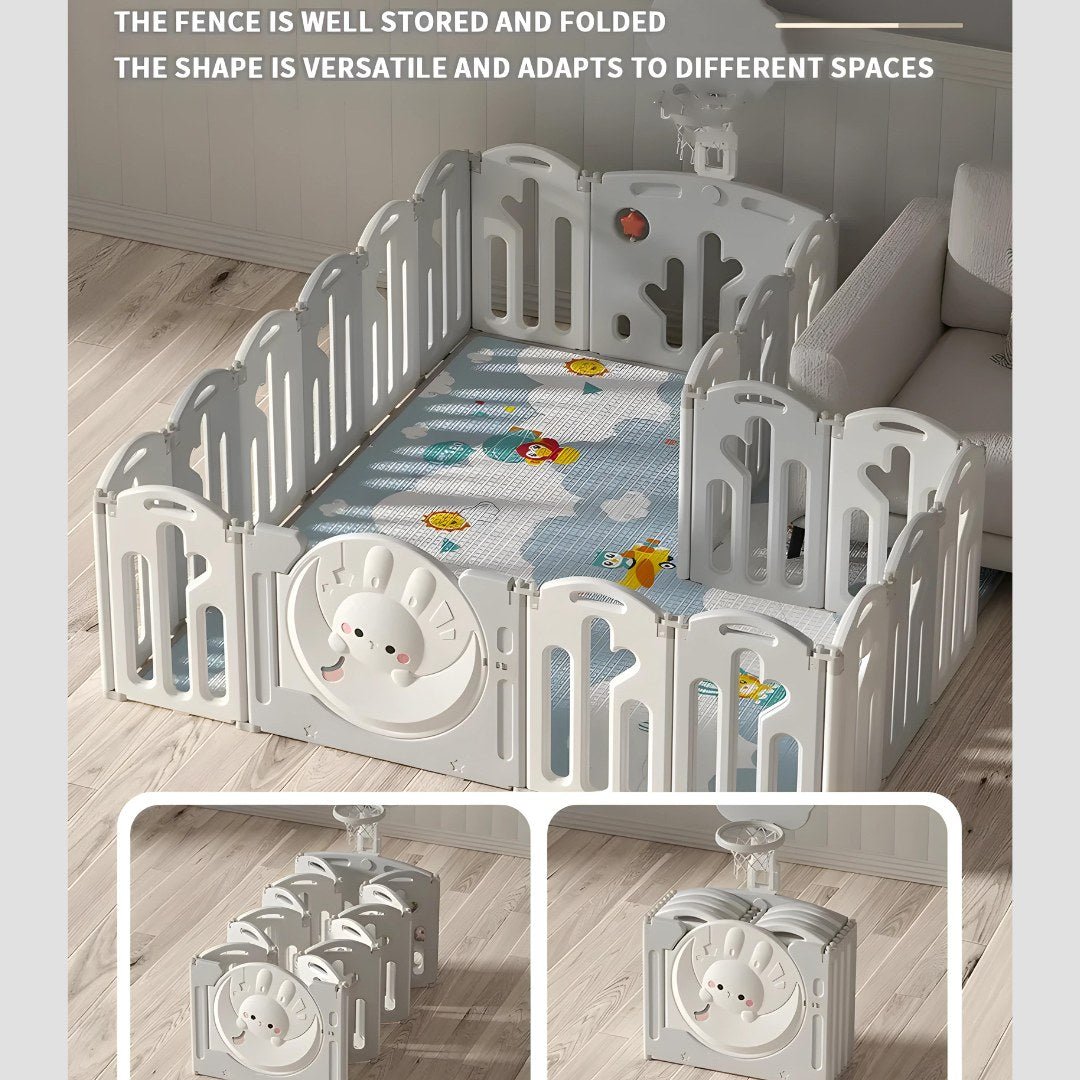 Inbegrepen in de set zijn een zachte mat, leuke oceaanballen en een leuke basketbalring, waardoor een complete en plezierige speelruimte voor uw kind ontstaat