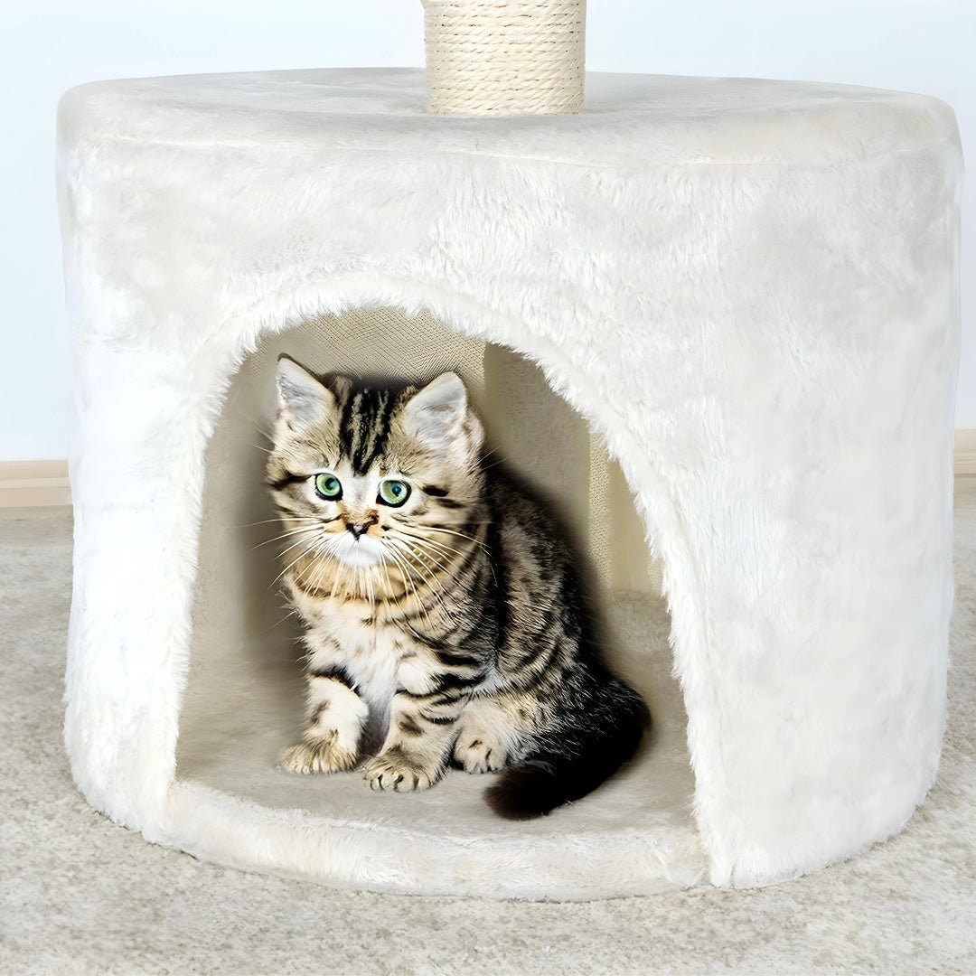 Ontworpen om mee te spelen, te klimmen en de klauwen te scherpen, combineert het duurzame sisal met zachte, pluche stof om zowel functionaliteit als comfort te garanderen