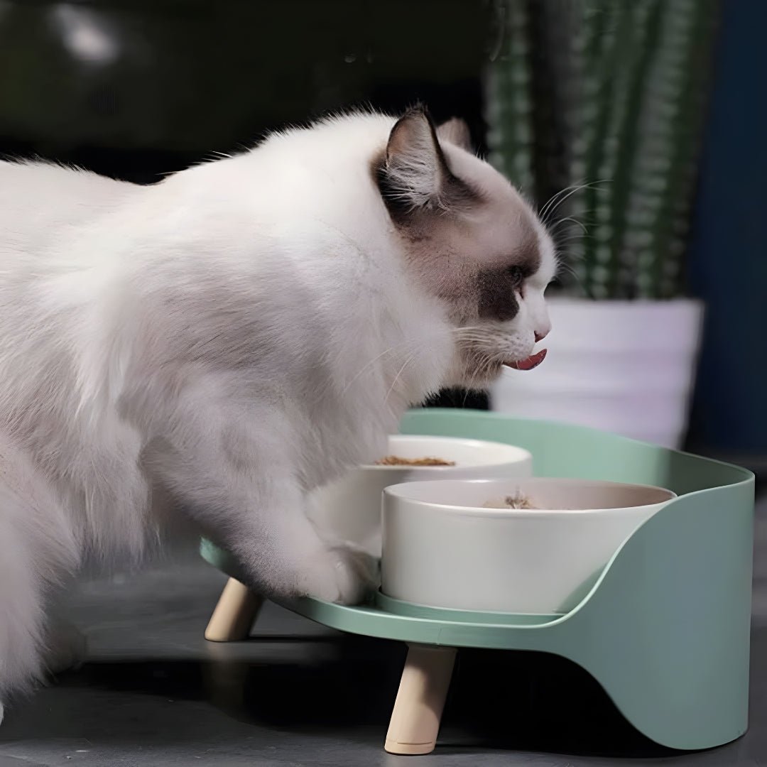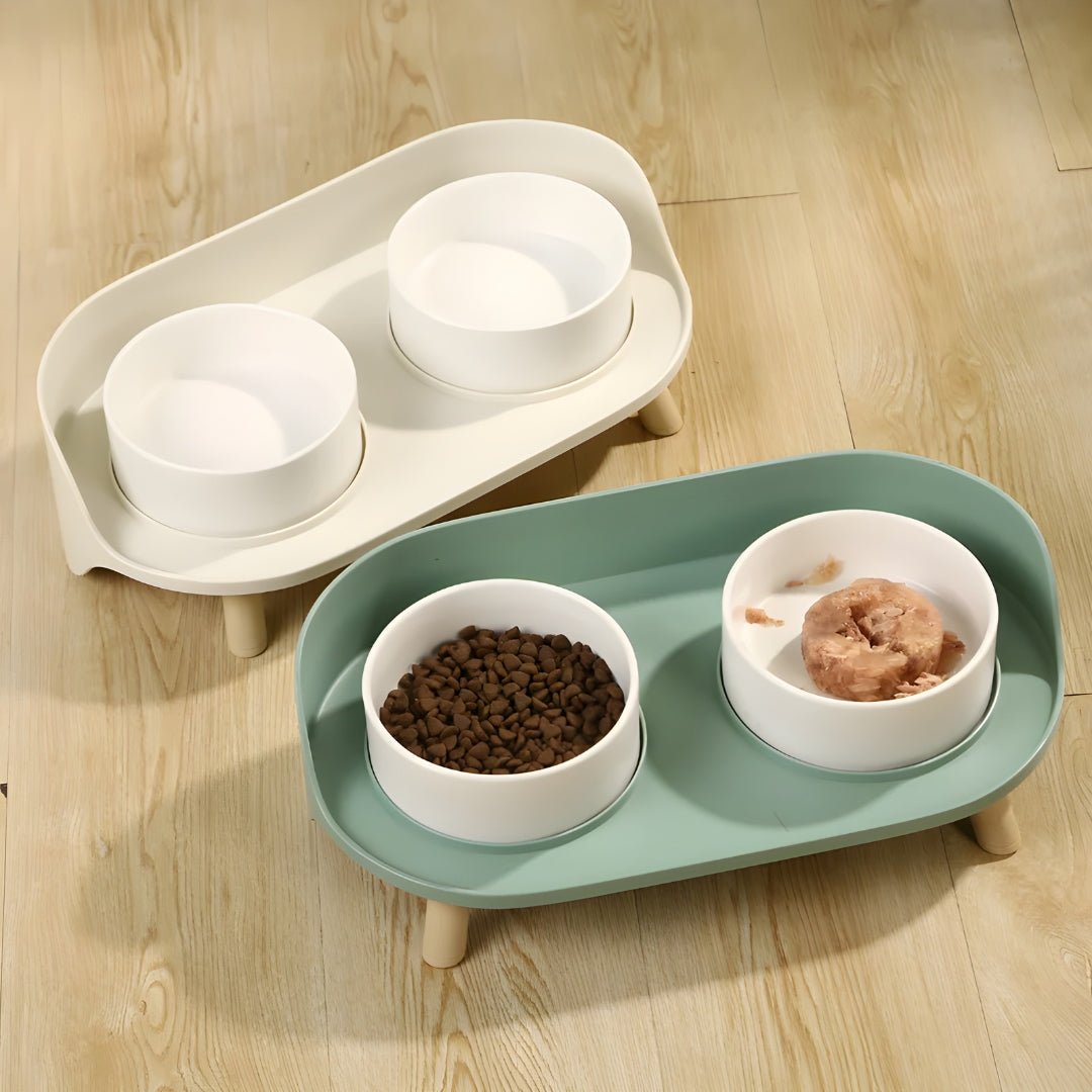 The Anti-Spill Elevated Double Bowl Feeder is ideal for small cats and dogs