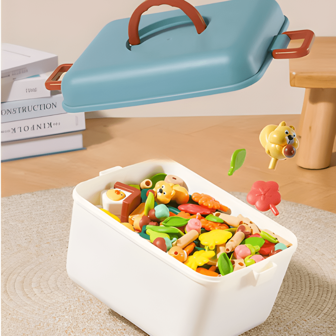 The included colorful storage box makes it easy to keep everything organized after playtime.