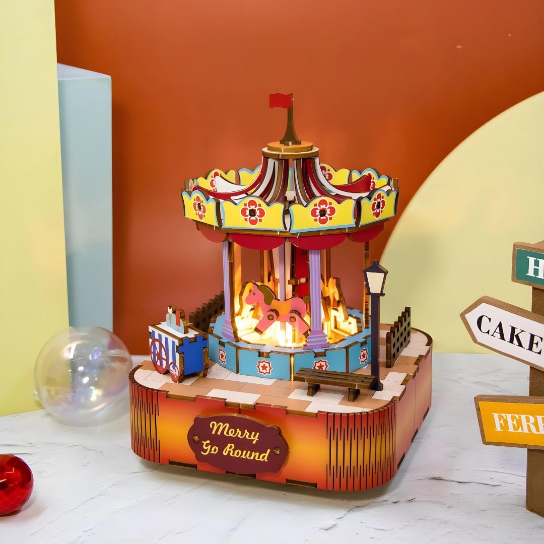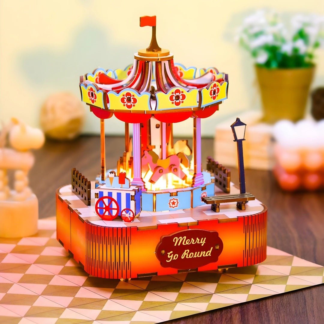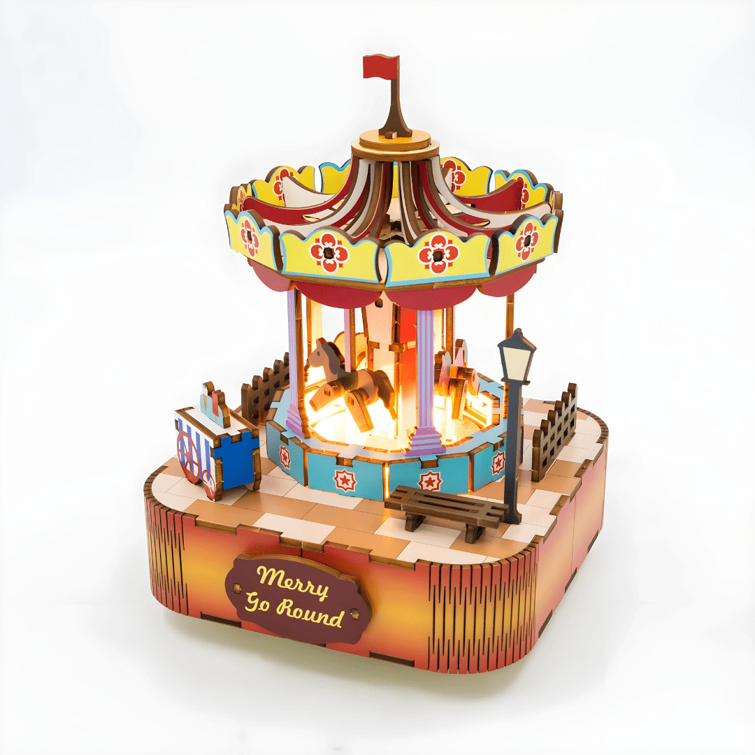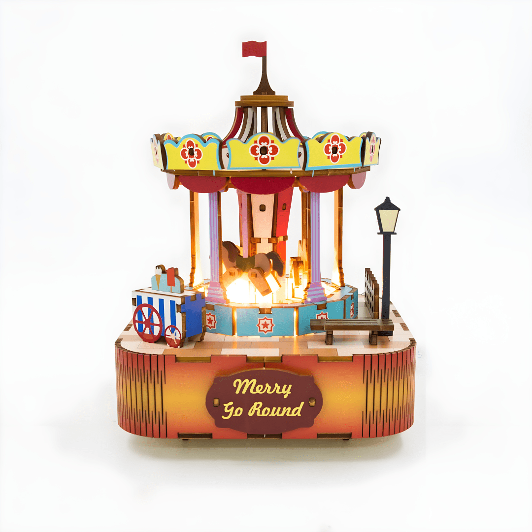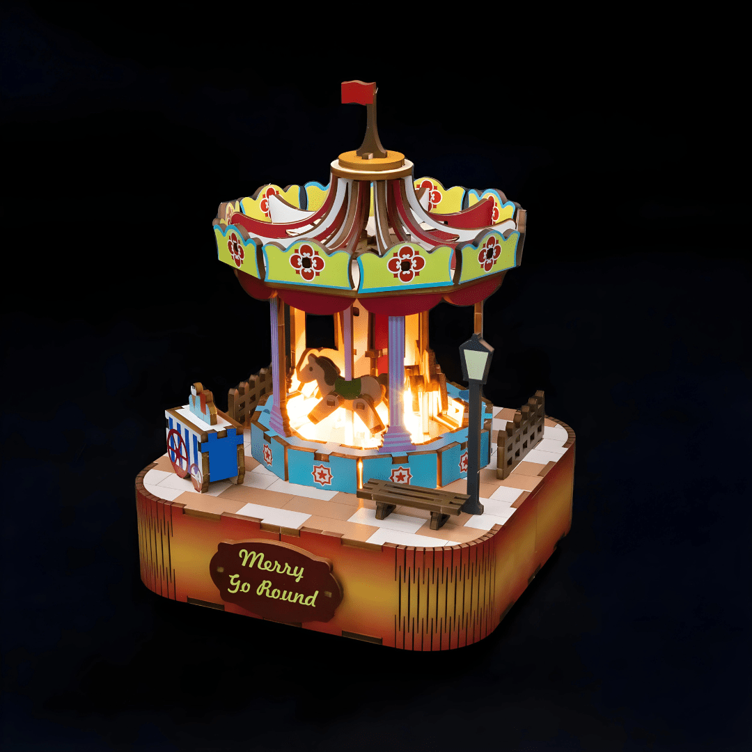 As soft music gently plays, the merry-go-round rotates, inviting you to close your eyes and revisit the magic of childhood
