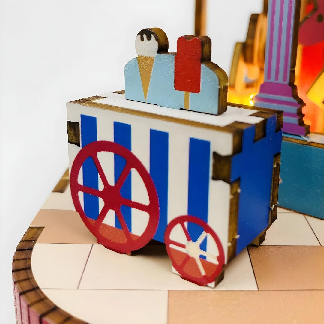 Additionally, the ice cream truck element symbolizes endless sweetness and happiness, further enhancing the music box's charm