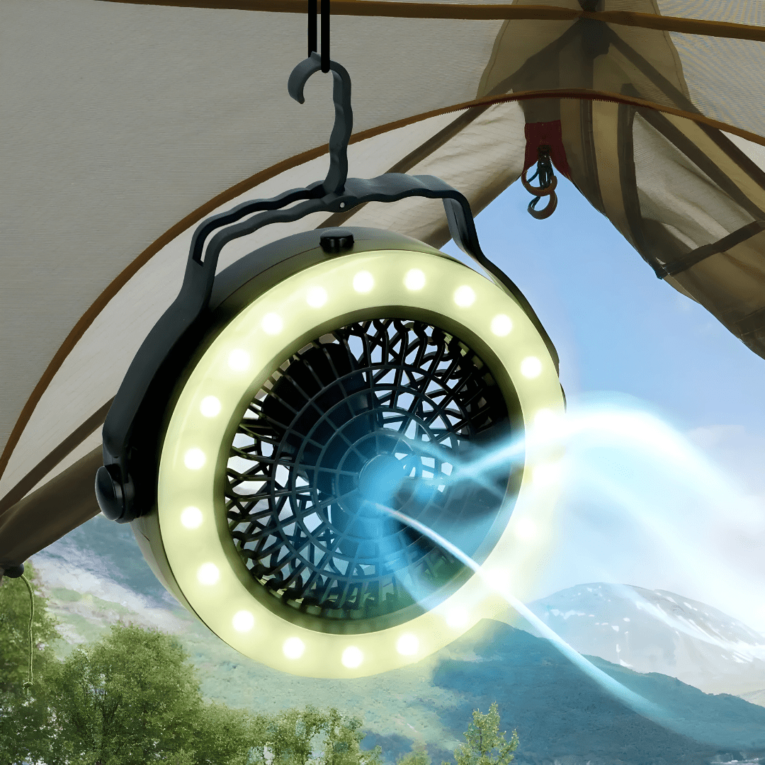 💡 2-in-1 Function – cooling fan + LED lantern in one device