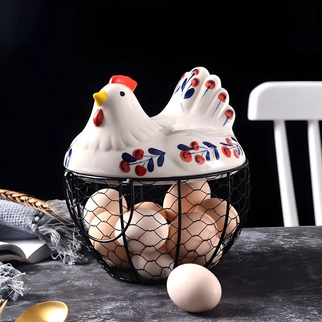 Add a touch of charm to your kitchen with our Iron Hand-Painted Ceramic Kitchen Storage Basket for Eggs