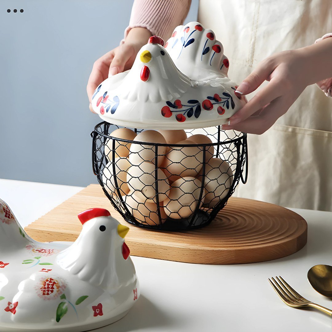 Hand-Painted Ceramic Egg Storage Basket – Stylish Kitchen Storage!