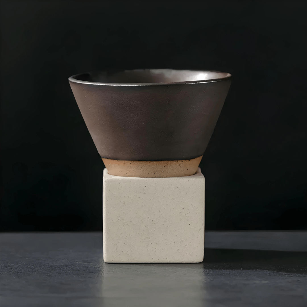 The cup comes with a matching ceramic base, designed to hold your cup securely while serving as a stylish coaster that catches drips and prevents heat damage to your surfaces.