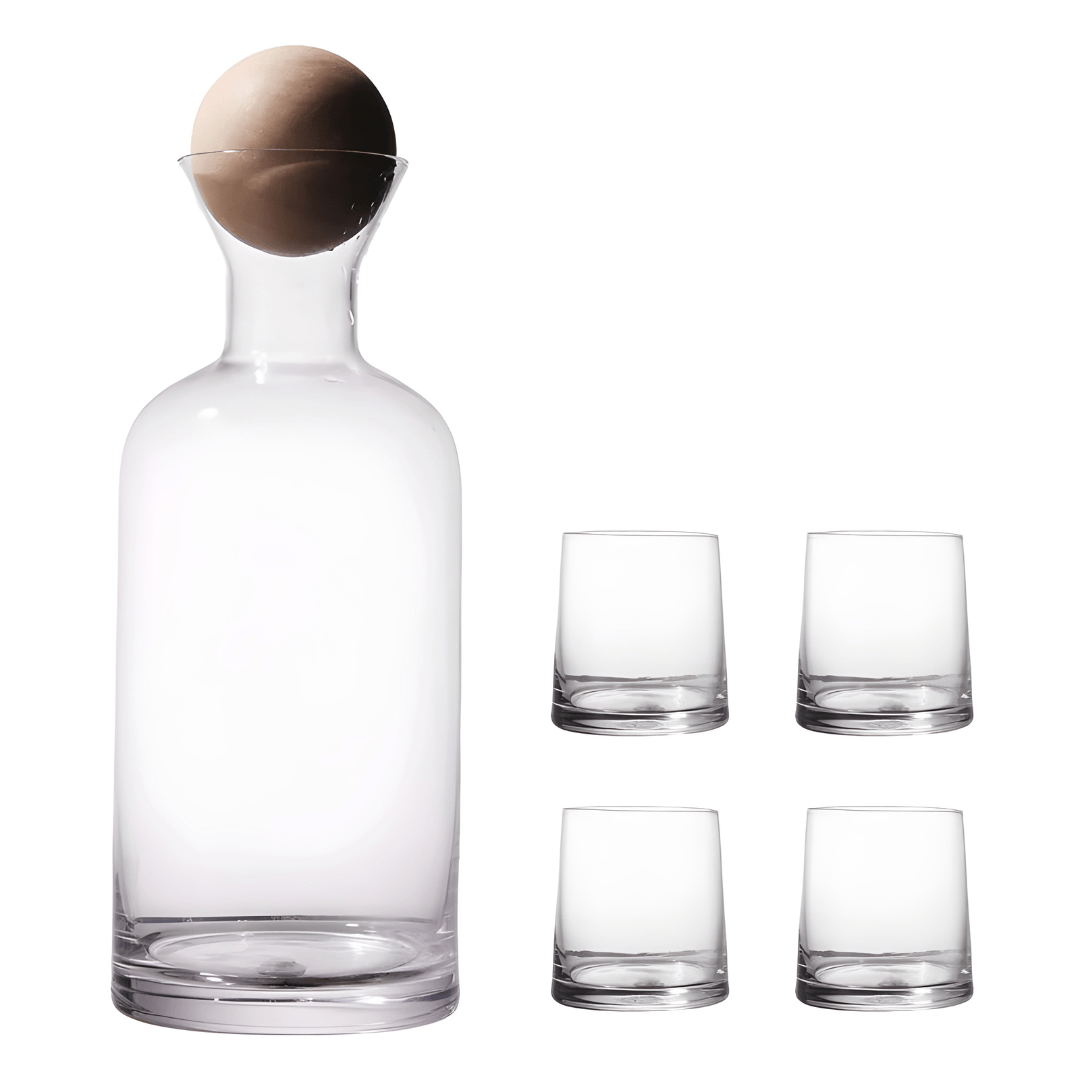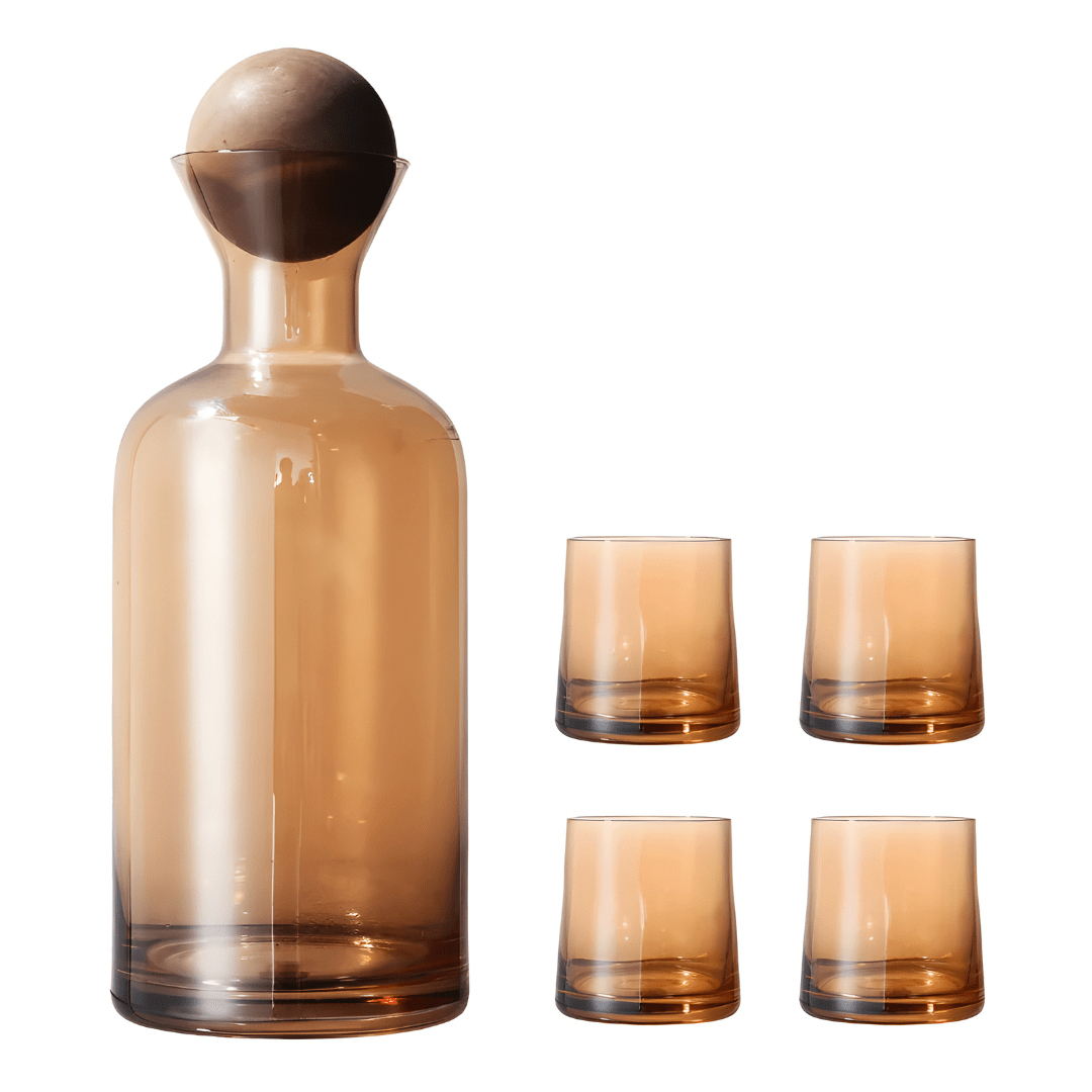 Handmade High Borosilicate Glass Jug Set with Bamboo Lid and 4 Glasses