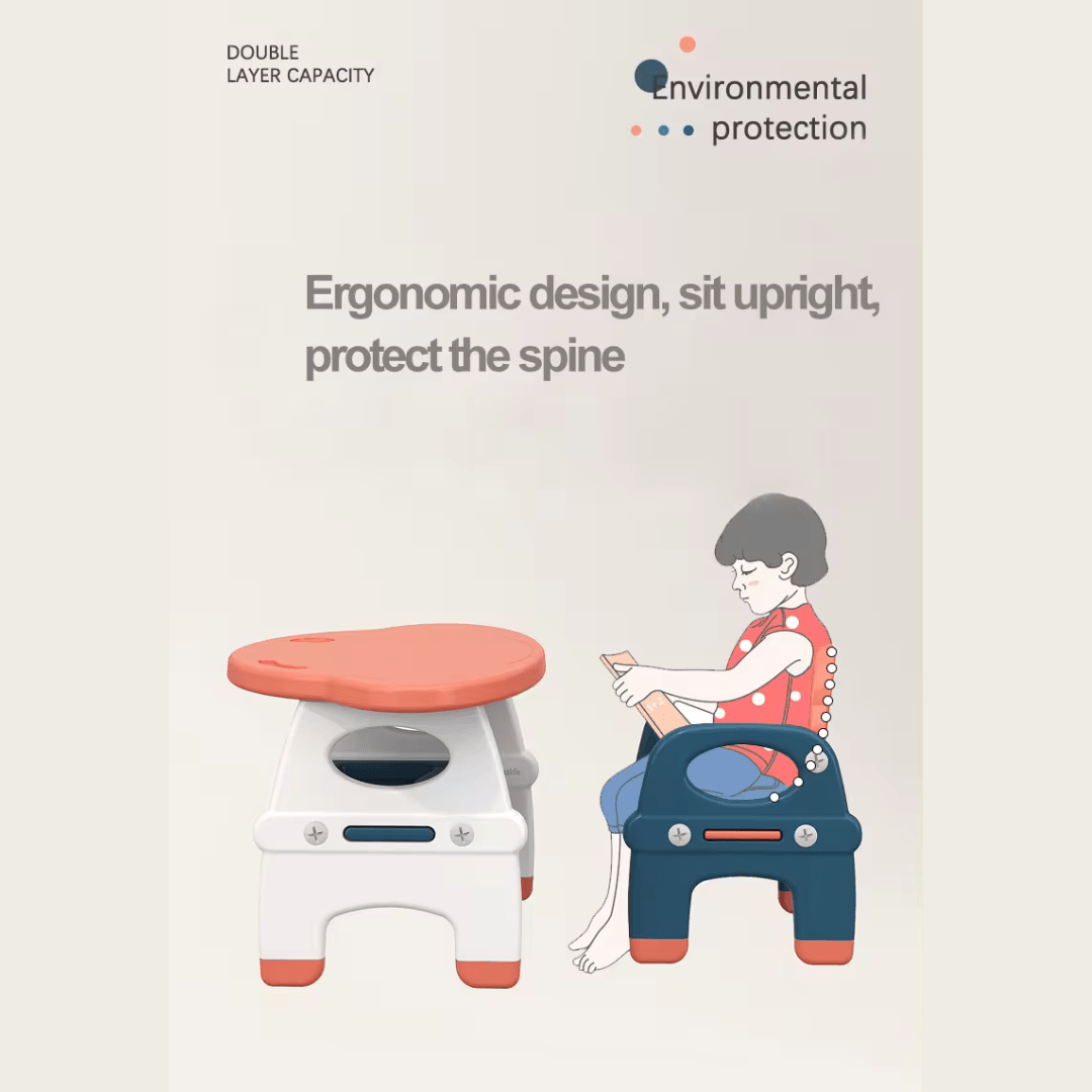 The table top groove design allows for easy placement of a baby water bottle , and with a 4 cm thick panel and a maximum load of 20 kg , it offers double-layer capacity and ergonomic design to help children sit upright and protect their spine