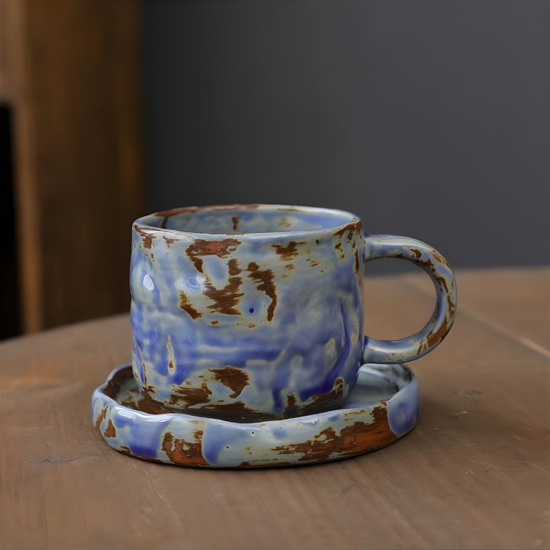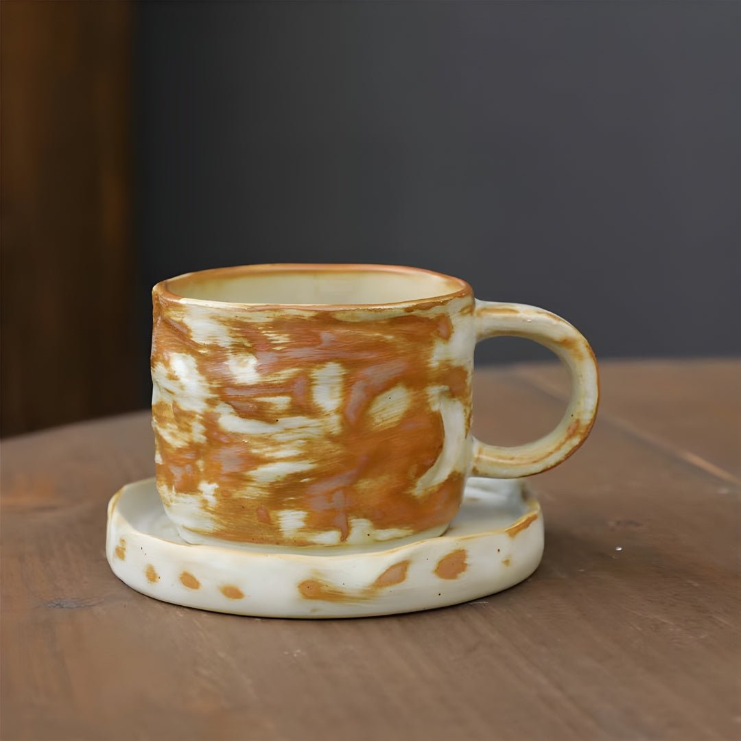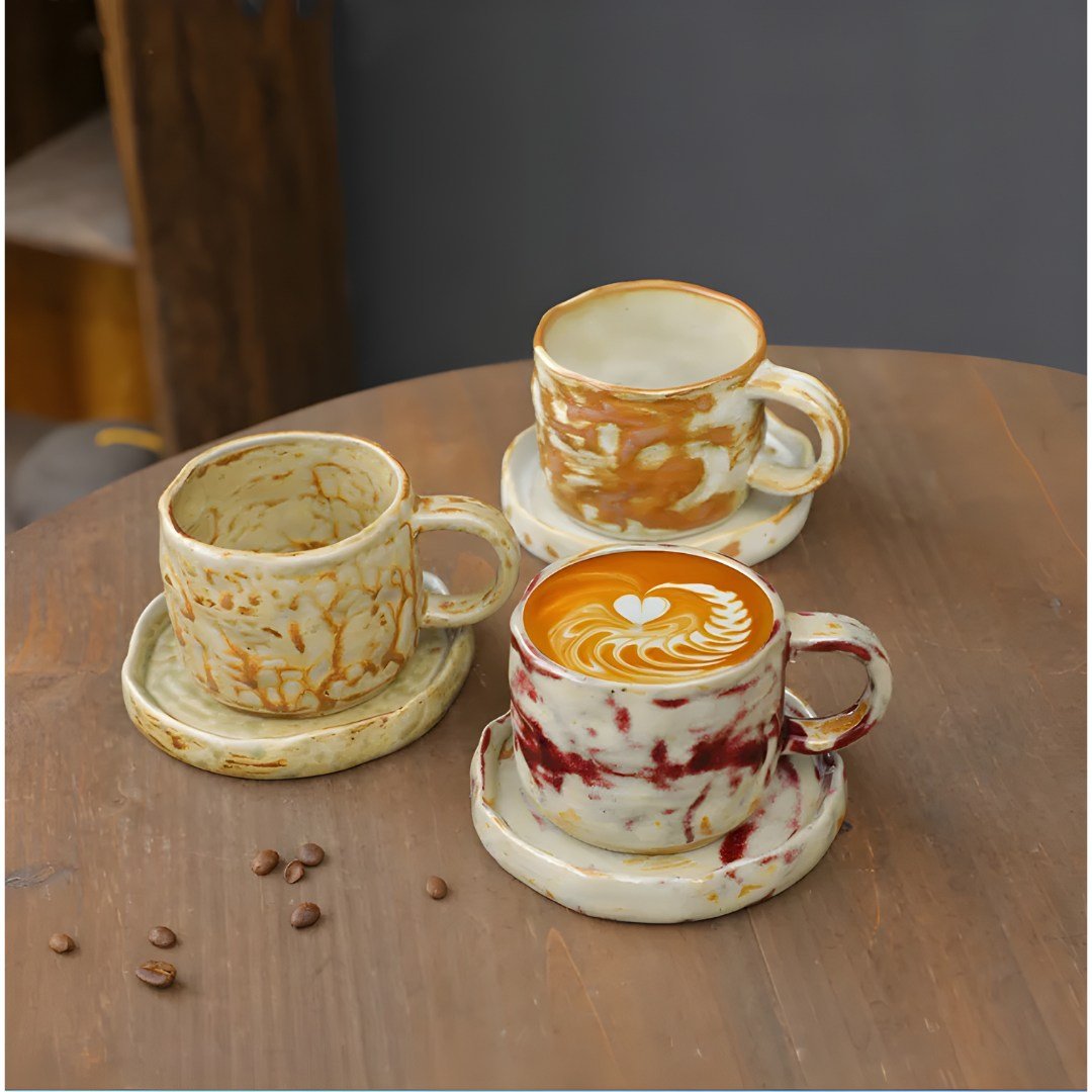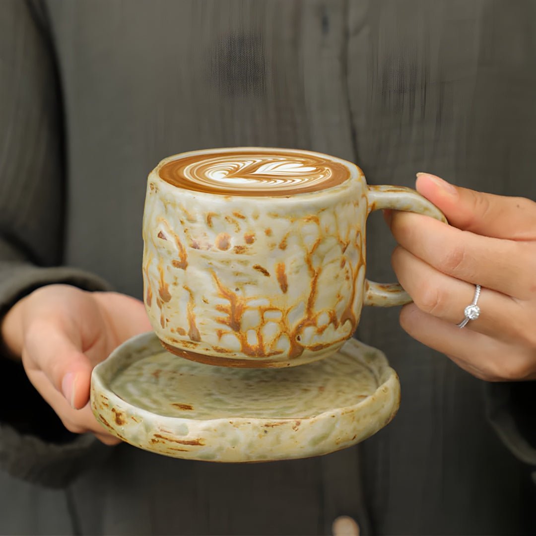 Japanese Style Rough Pottery Tea Cup and Saucer Set, a 270ml masterpiece crafted for those who seek both taste and flavor in every sip