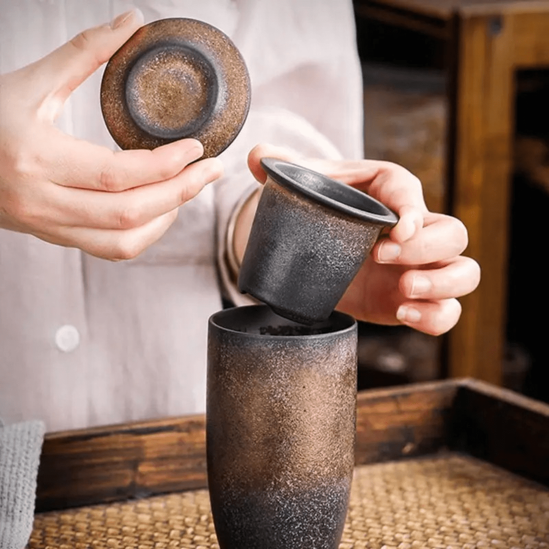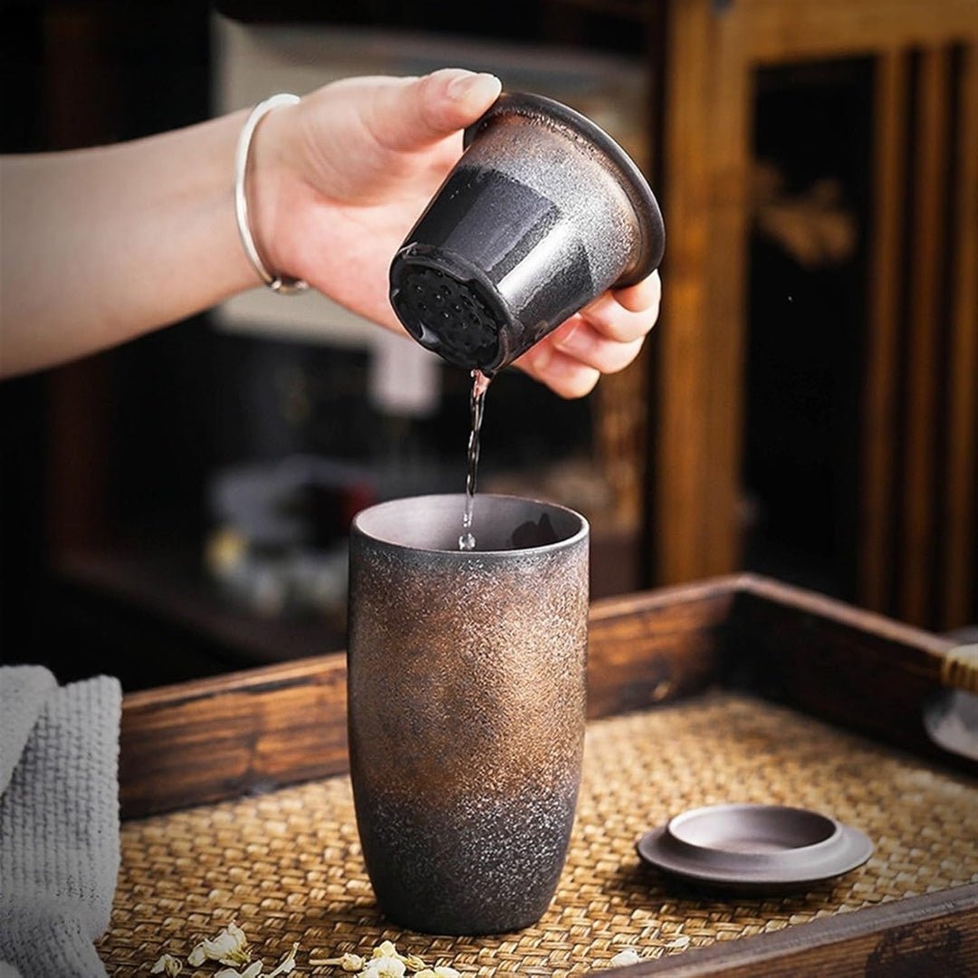 Enjoy your tea in style with our Vintage Style Stoneware Filter Tea Cup