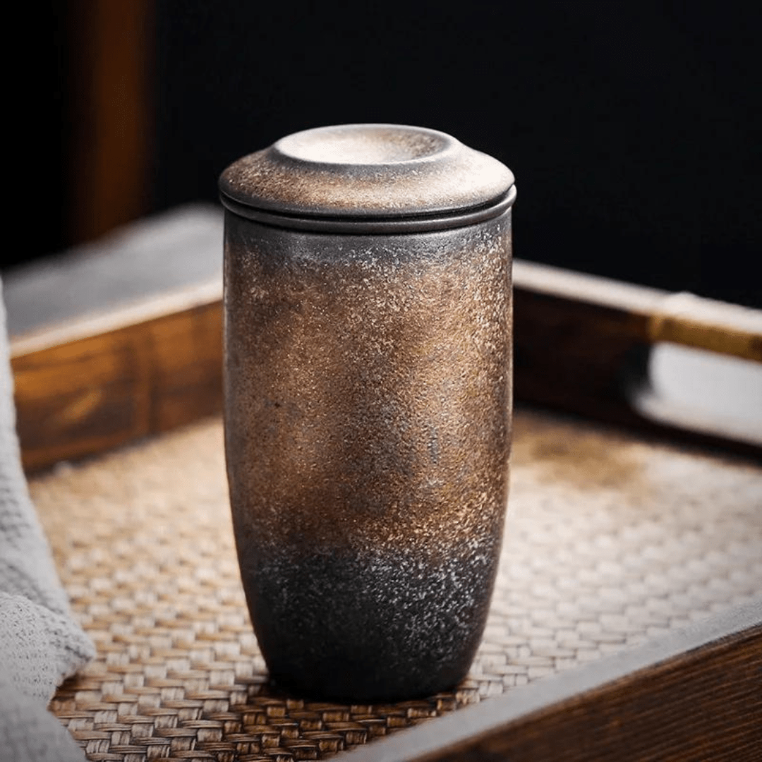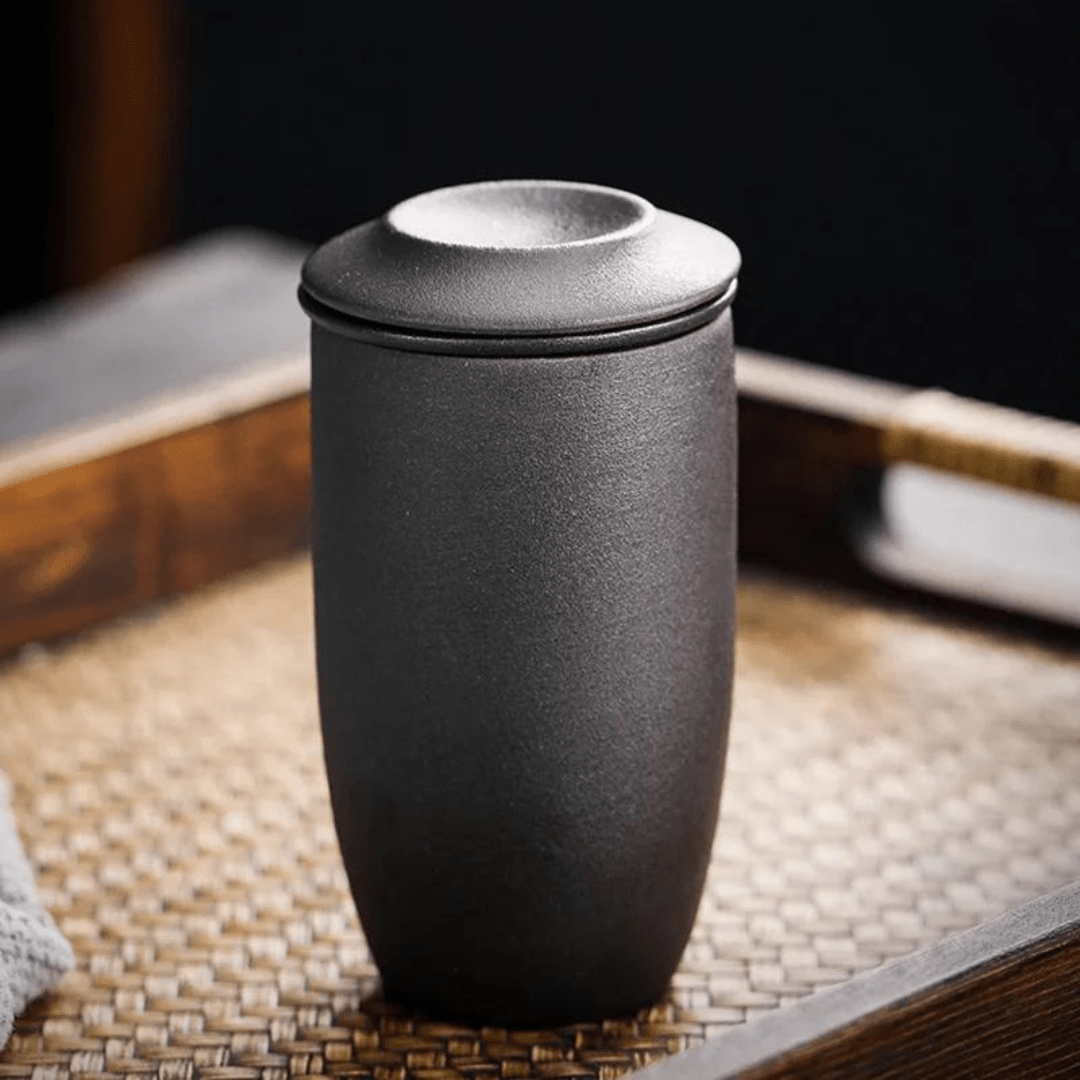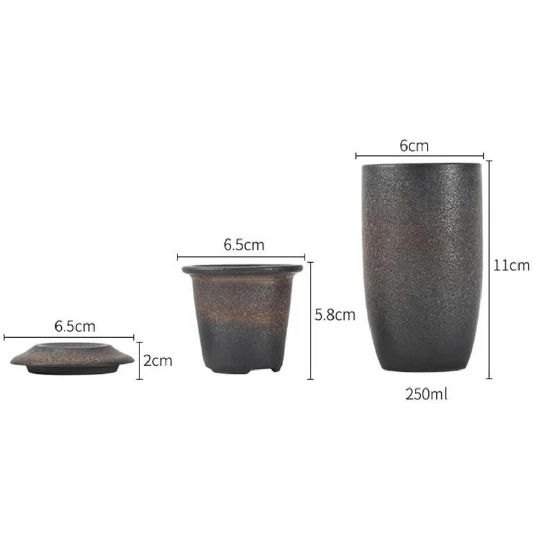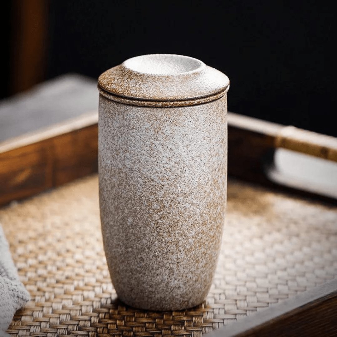 Japanese Style Stoneware Filter Tea Cup With Lid 225ML
