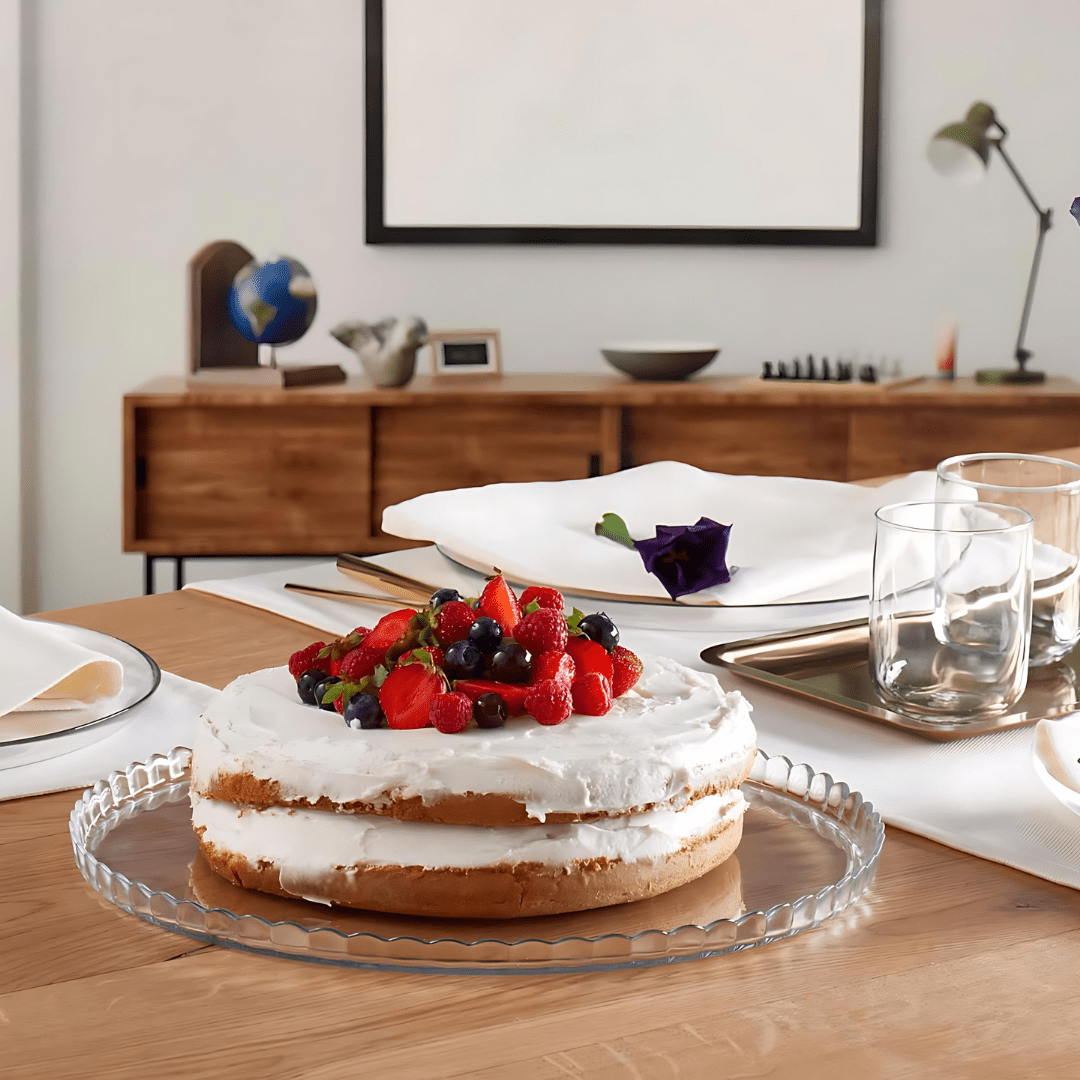 Patisserie Cake Plate, measuring 32.2 cm and crafted from high-quality transparent glass