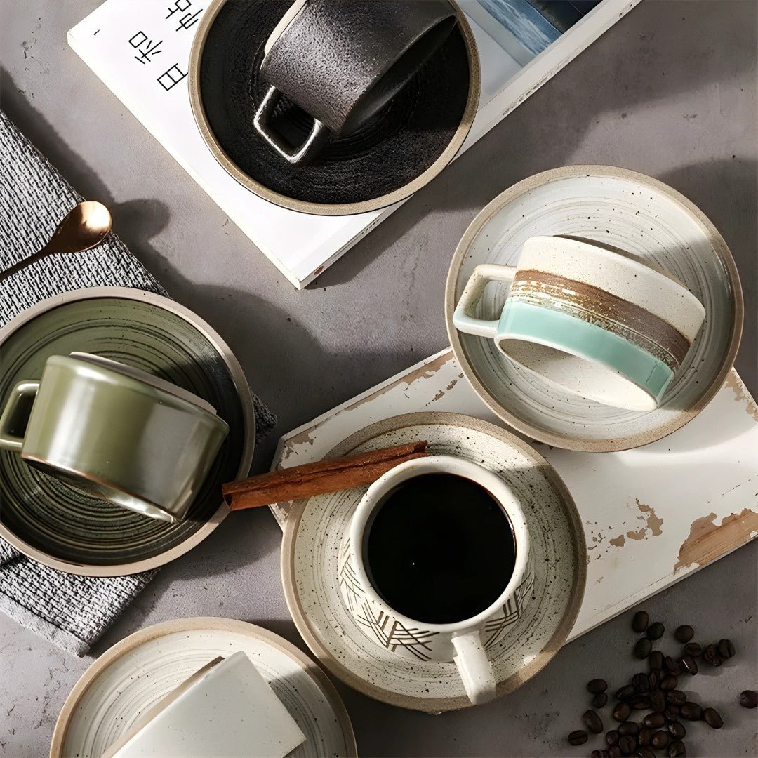 Elegant 250ml Retro Stoneware Cup and Saucer