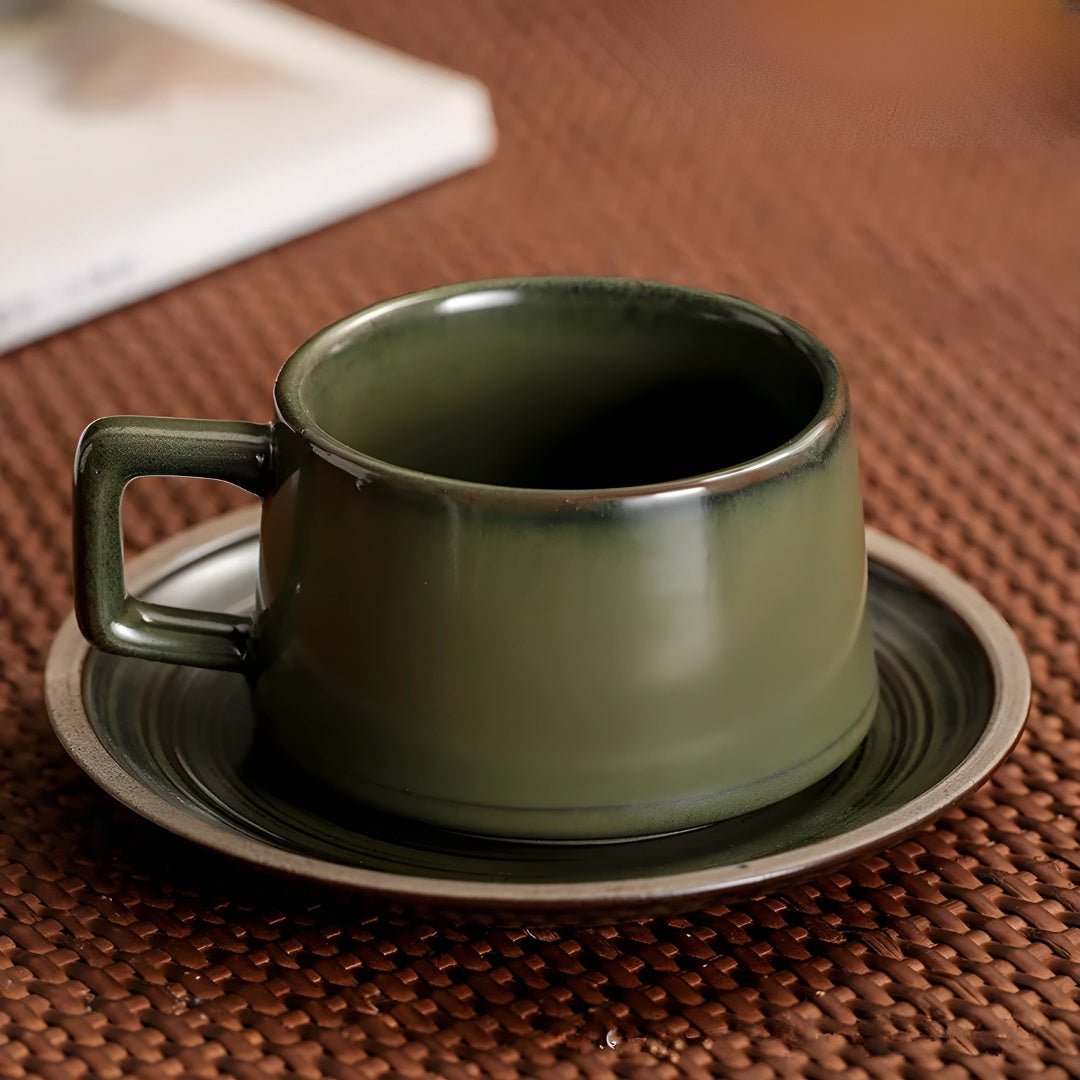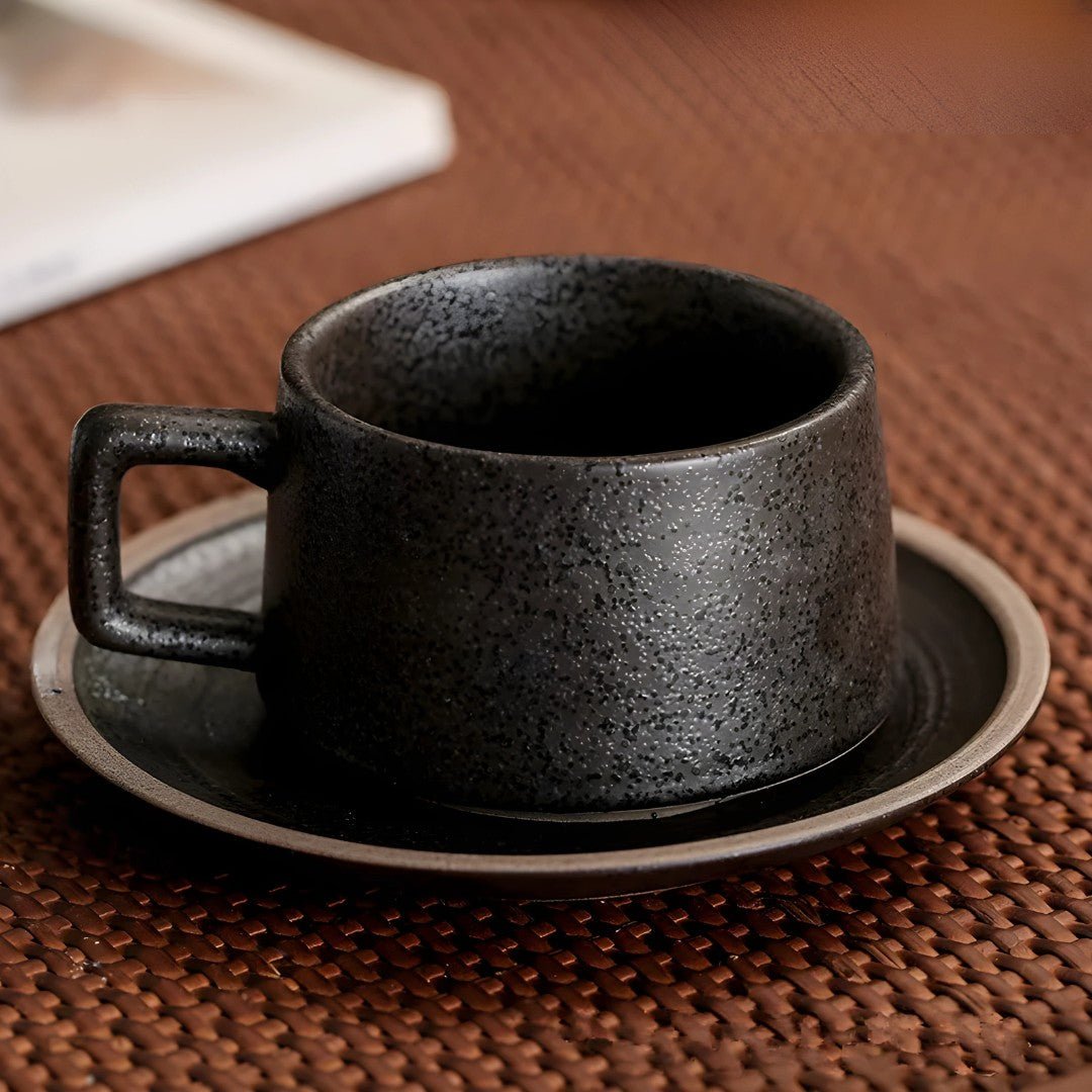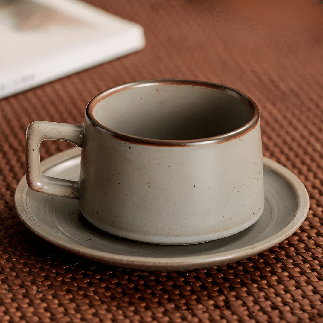 250ml Retro Stoneware Cup with Saucer is crafted from high-quality ceramic for lasting durability