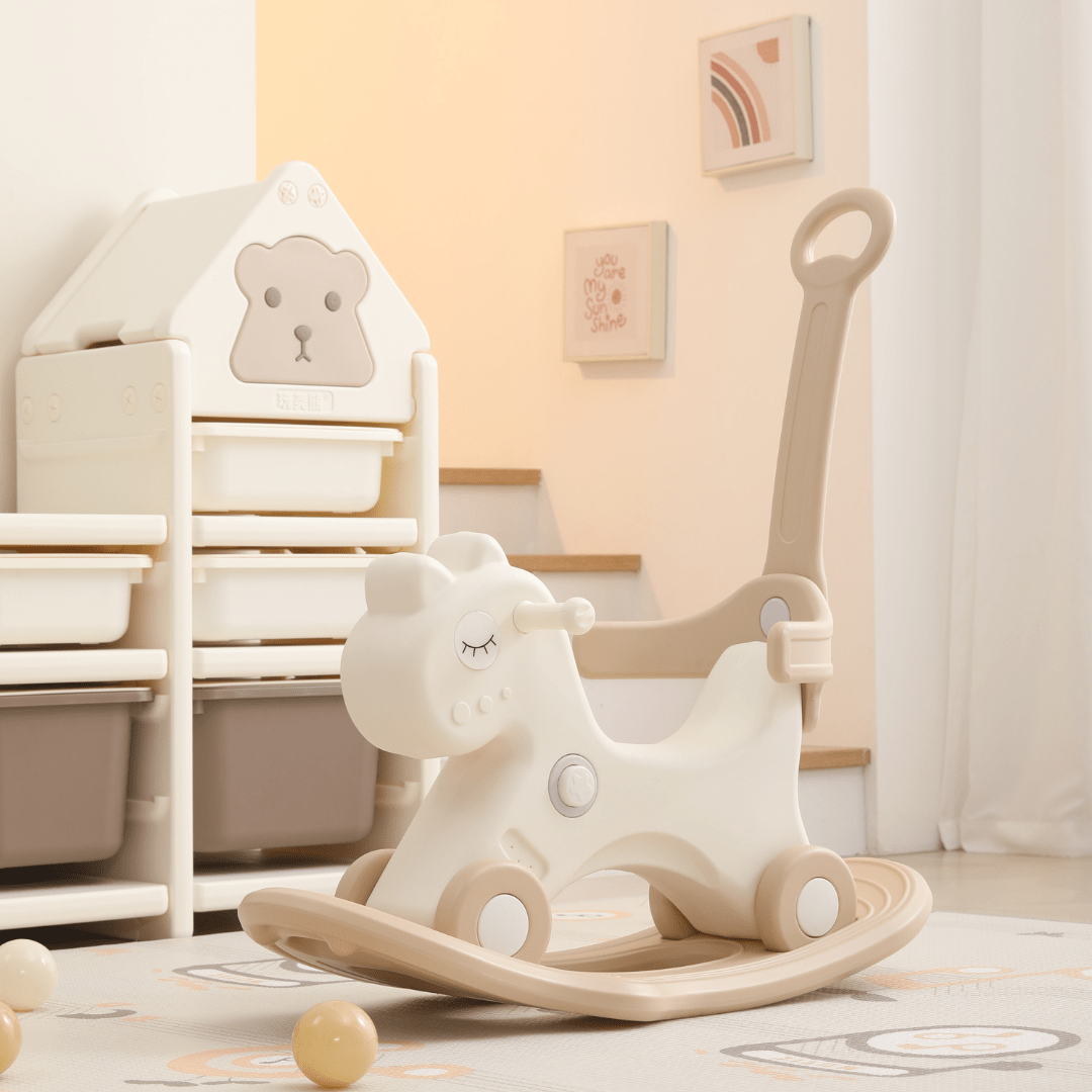Our versatile 5 In 1 Baby Rocking Horse, crafted from high-quality HDPE sturdy plastic for lasting durability.