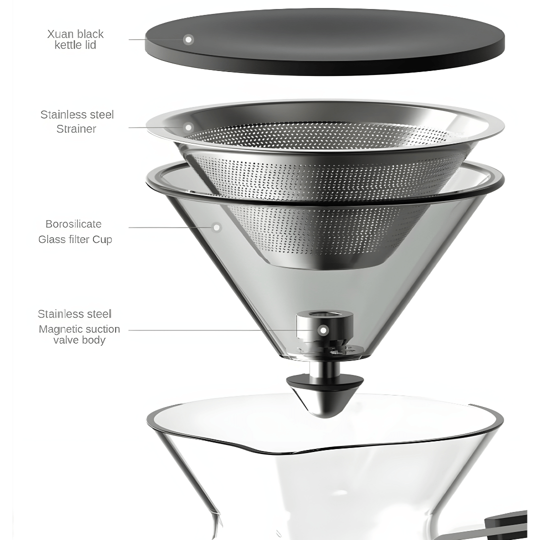 The magnetic control mechanism ensures seamless, drip-free brewing with precision — whether you’re steeping tea or brewing artisan pour-over coffee.