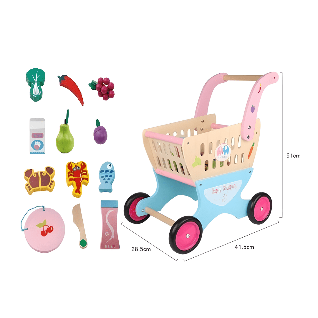 This Wooden Shopping Cart is an engaging toy designed for boys and girls aged 3 and up